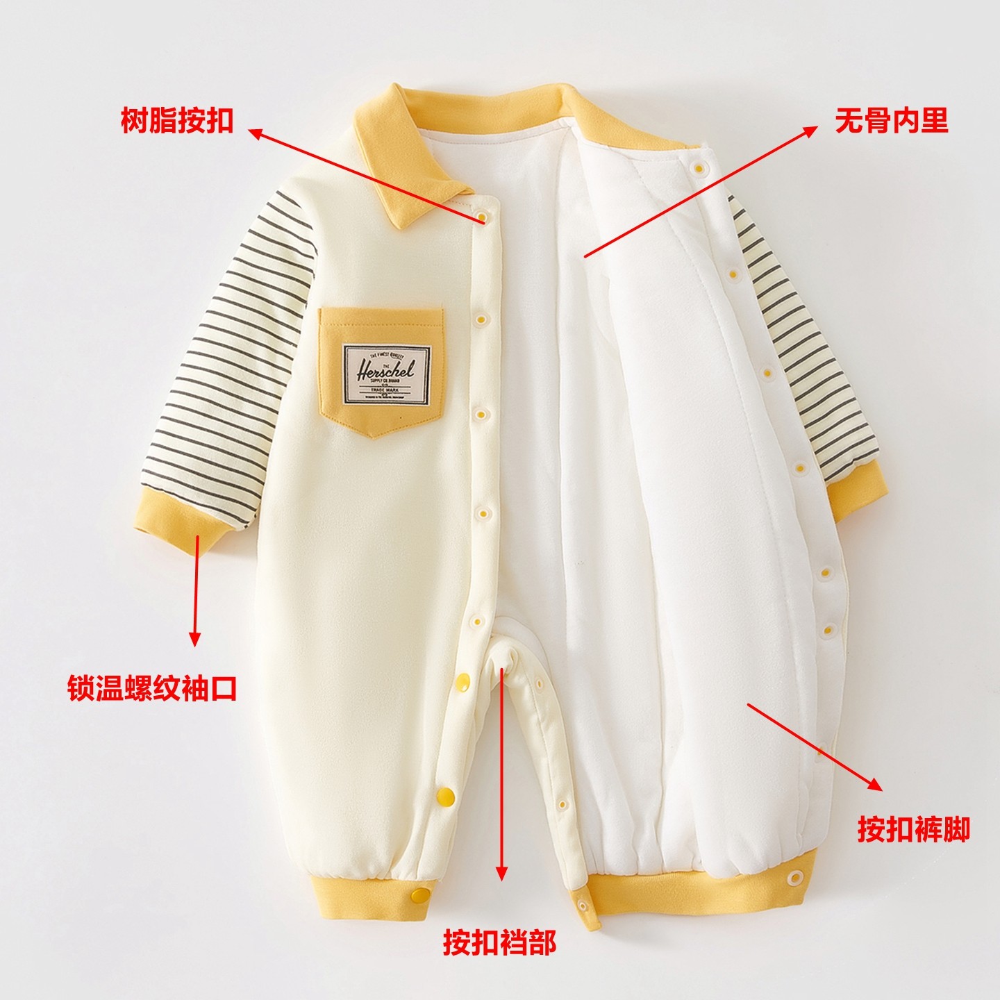 婴儿纯棉夹棉加厚保暖连体衣