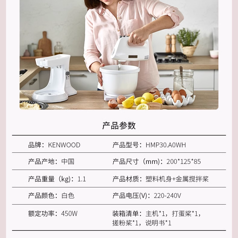 KENWOOD/凯伍德HMP30 家用手持打蛋器 大功率不锈钢奶油蛋白和面