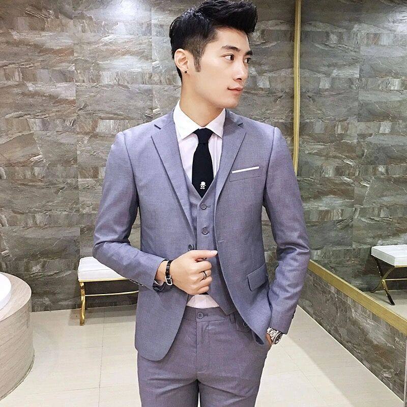 西服套装男士三件套韩版修身小西装职业正装伴郎服装新郎结婚礼服