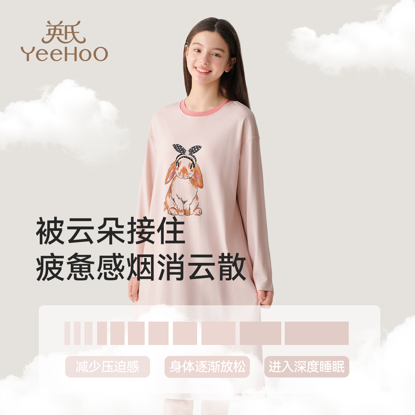 英氏少女连衣裙女孩长袖纯棉睡衣