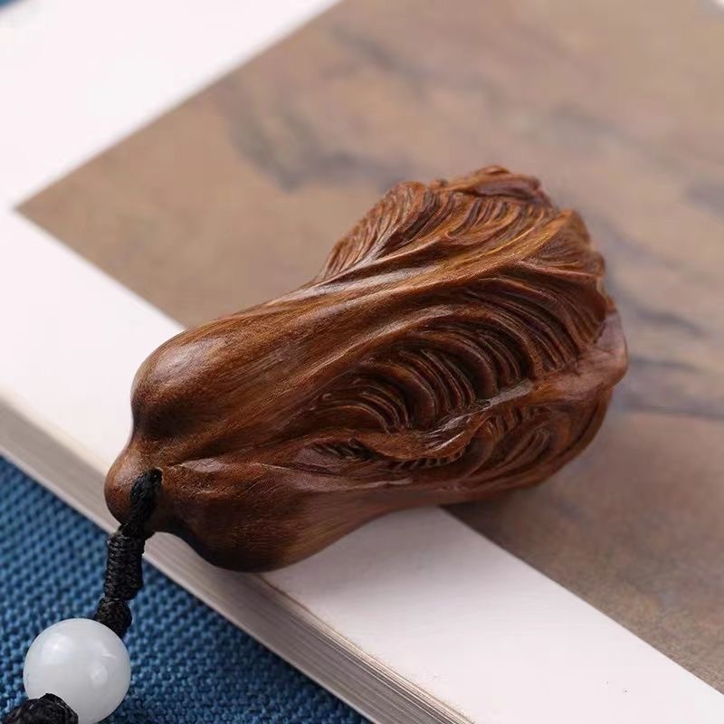 速发黄花梨手把件木雕刻工艺品随身把玩小摆件实木白菜车挂件饰品