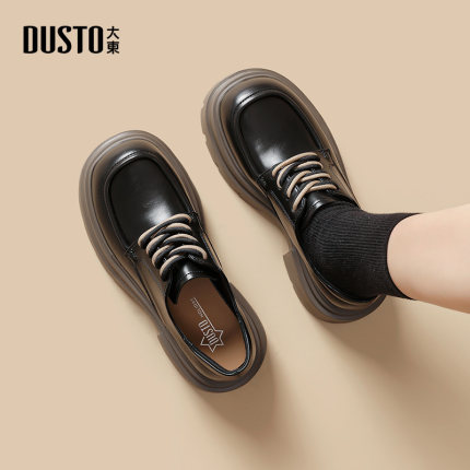 大东英伦风小皮鞋女2025秋季新款女鞋深口单鞋圆头低跟系带乐福鞋