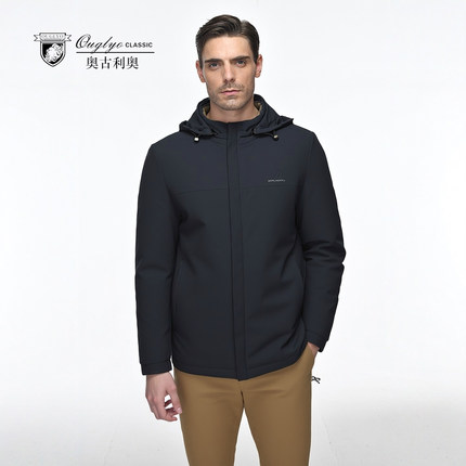 奥古利奥25年冬季新品男士商务羽绒服可拆卸帽鸭绒内胆外套偏厚