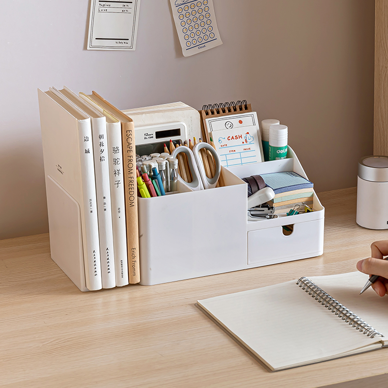 伸缩书夹桌面收纳盒学生宿舍书桌上文具整理神器笔筒办公桌置物架