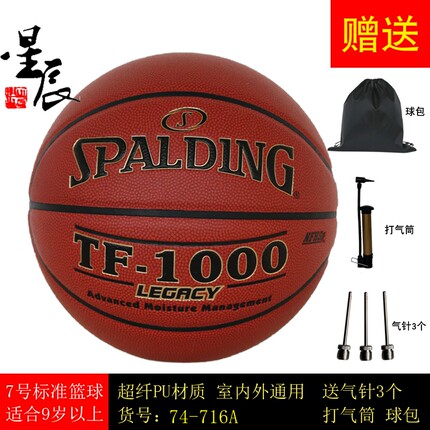 SPALDING斯伯丁正品PU室内篮球TF-1000 74-716A吸湿皮柔软ZK超纤