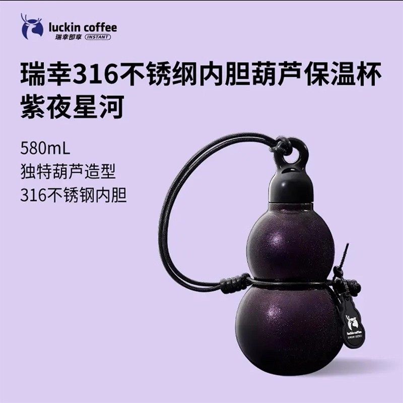 瑞幸咖啡316不锈钢内胆葫芦保温杯紫夜星辰河高颜值黑神话悟空款