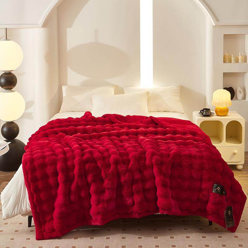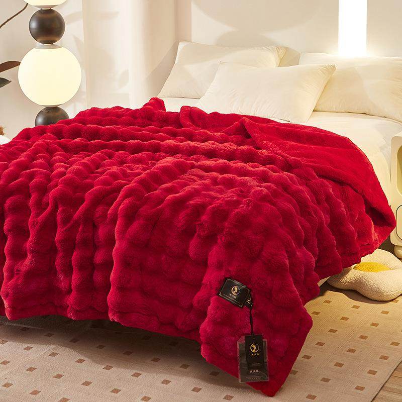 轻奢绒兔毛盖毯睡毯冬季柔软加厚保暖沙发绒毯婚庆卧室毛毯被子
