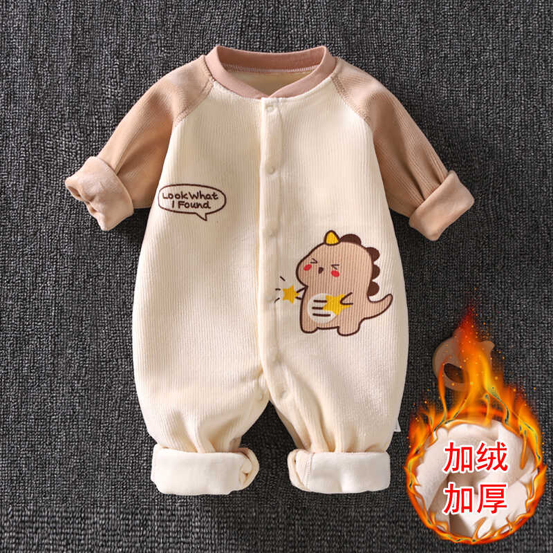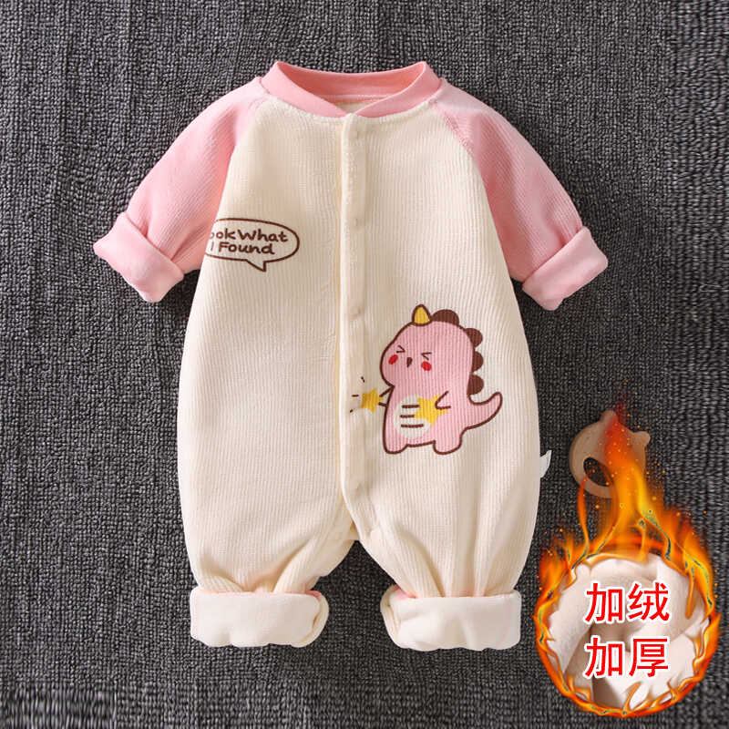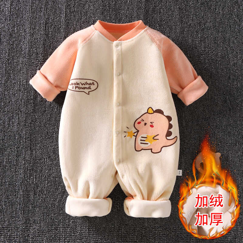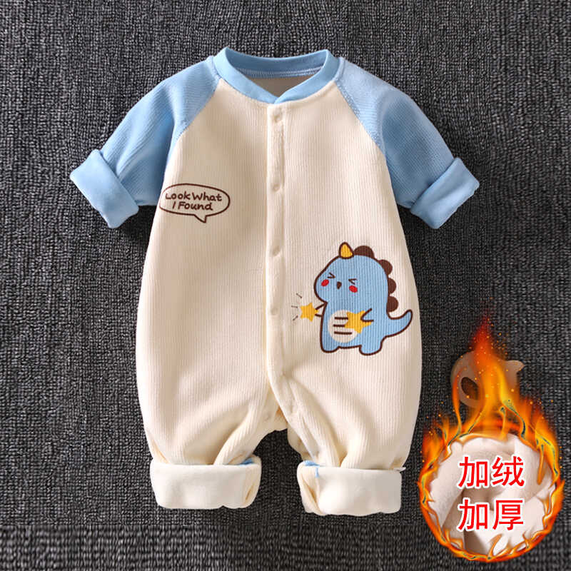 新生儿秋冬款加绒连体衣男女小宝宝保暖爬服婴幼儿外出服加厚哈衣