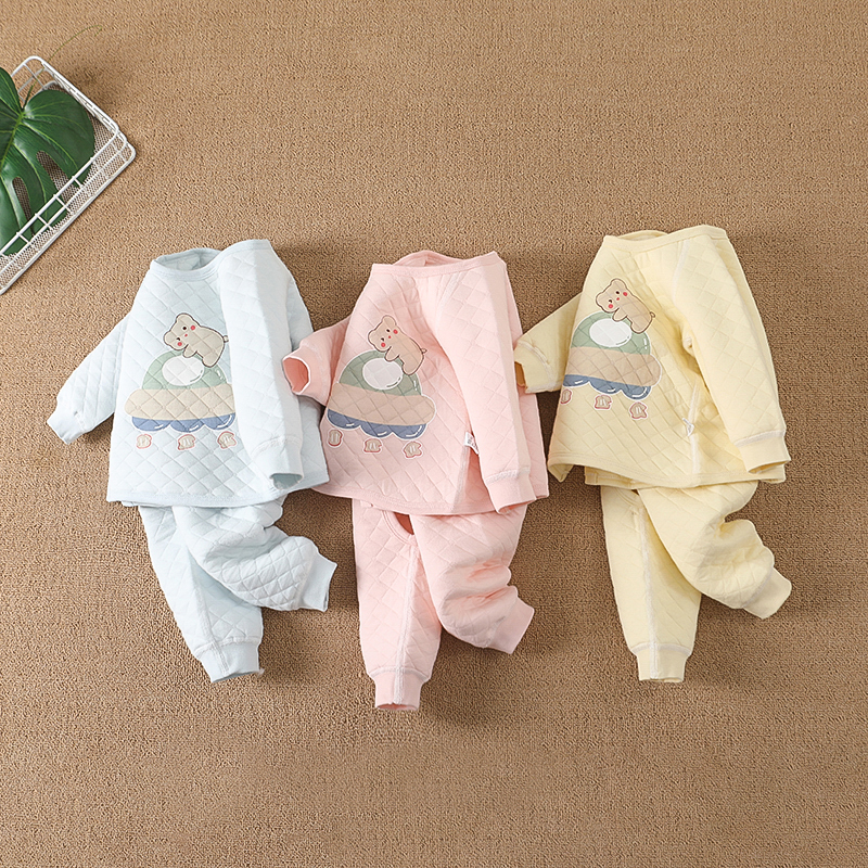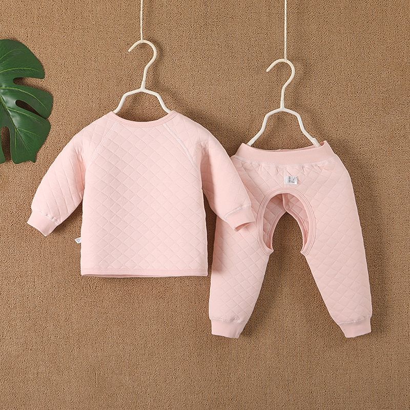 秋冬夹棉加厚男女宝宝偏襟保暖内衣套装新生儿分体护肚无骨秋衣裤