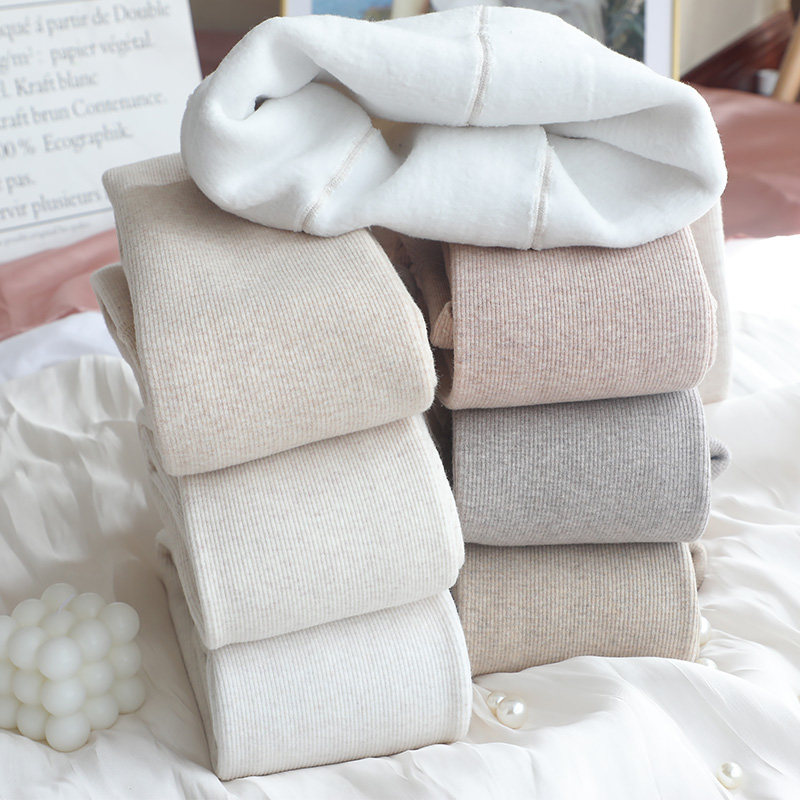 秋冬加绒打底裤棉燕麦色连裤袜女螺纹显瘦外穿保暖九分米白烟灰色