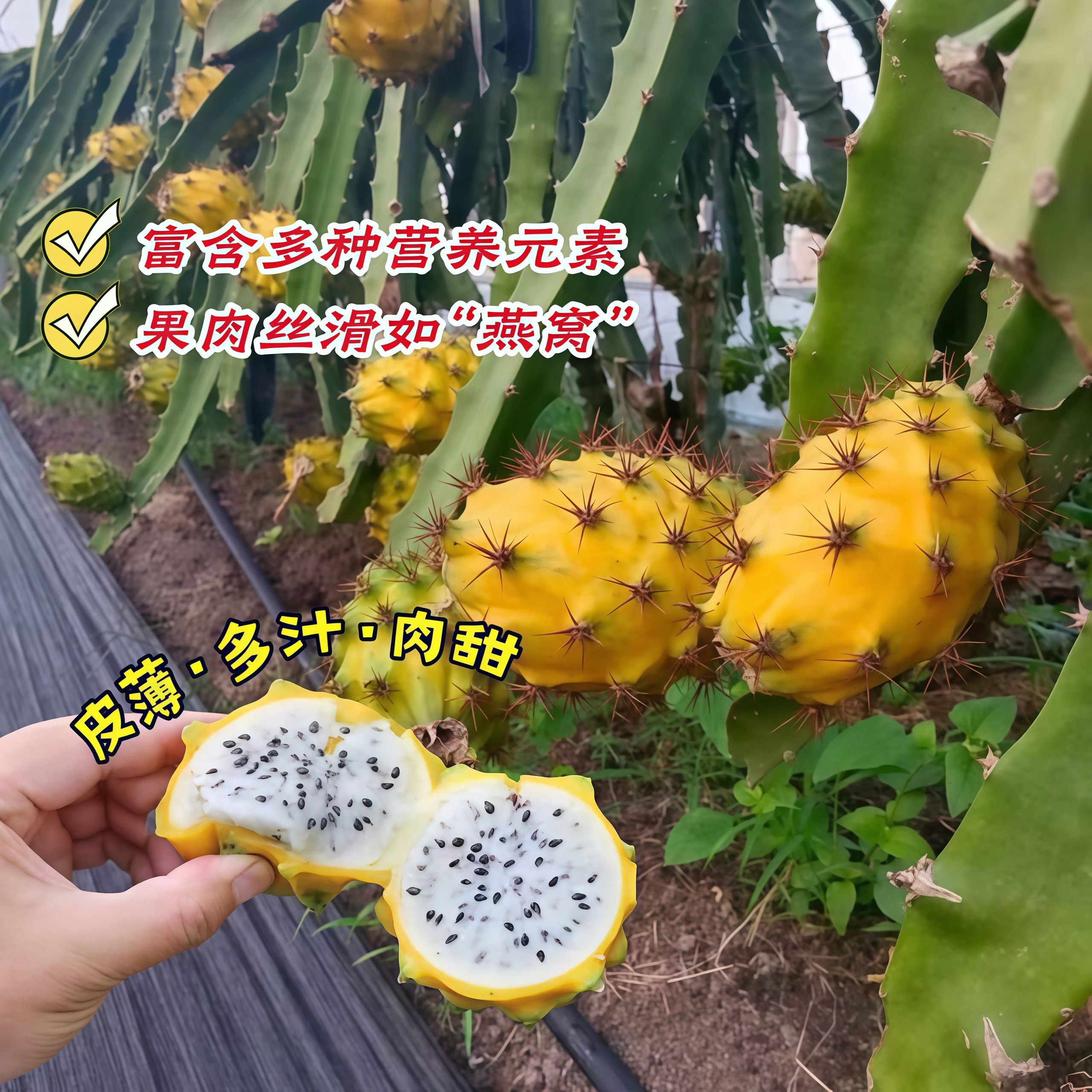燕窝火龙果树苗带果新品种麒麟果苗黄皮白肉火龙果嫁接苗当年结果