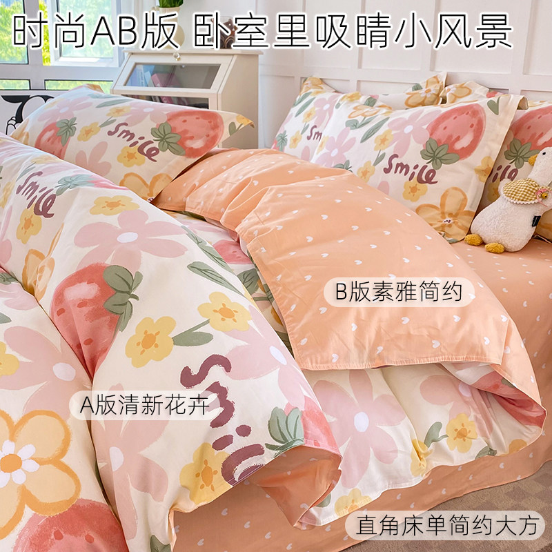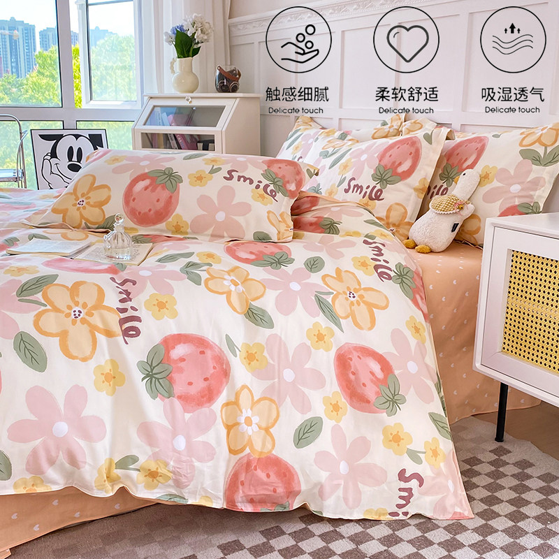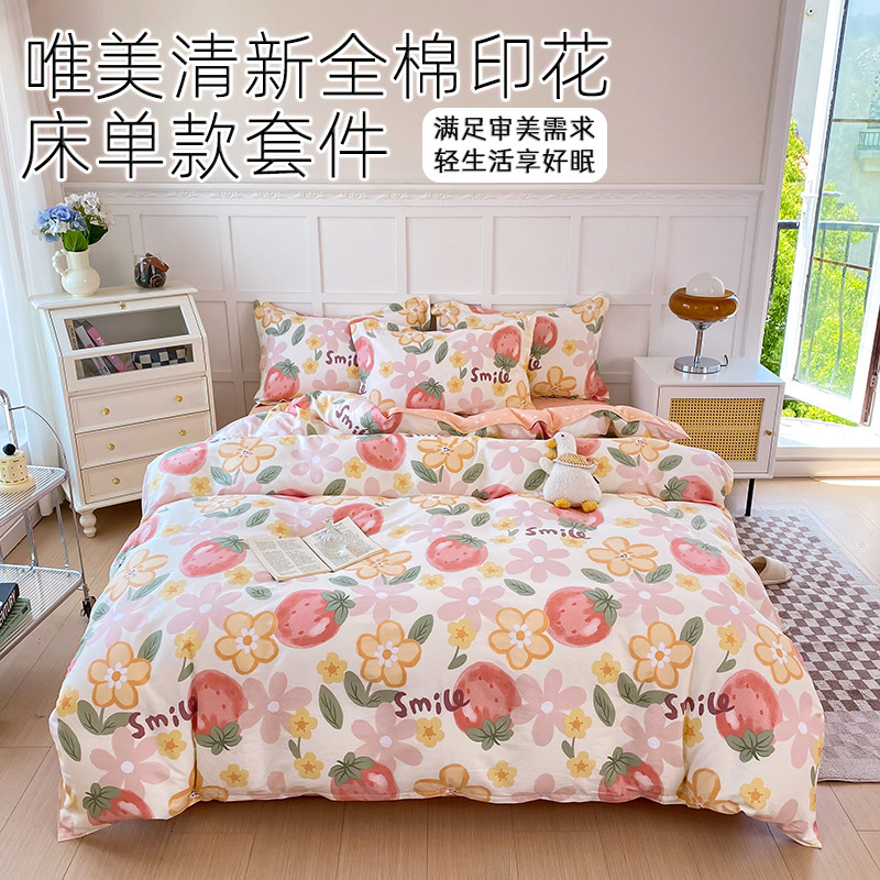 100%全棉四件套床单被套学生宿舍单人三件双人纯棉四件套床上用品