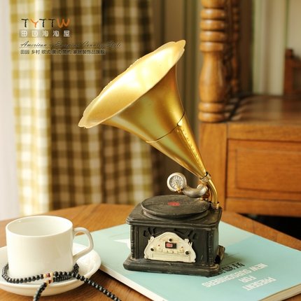 简约欧式复古唱片机 酒吧家居工艺品摆件咖啡厅装饰品留声机模型