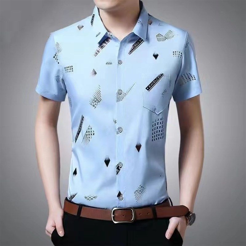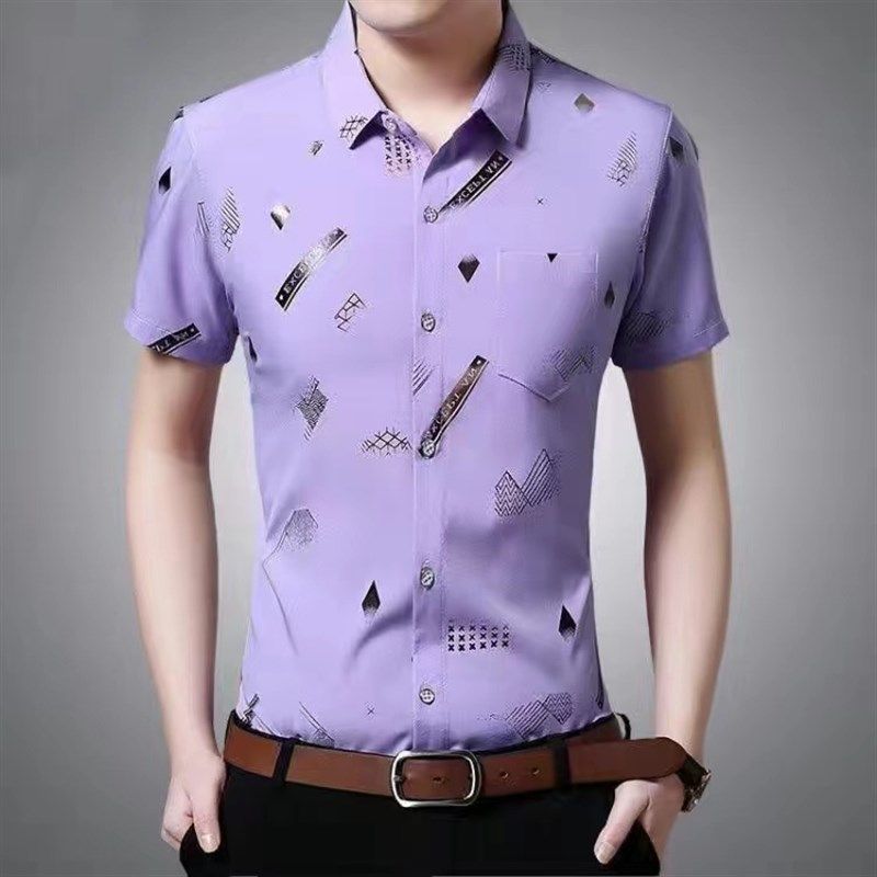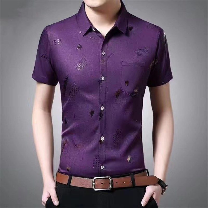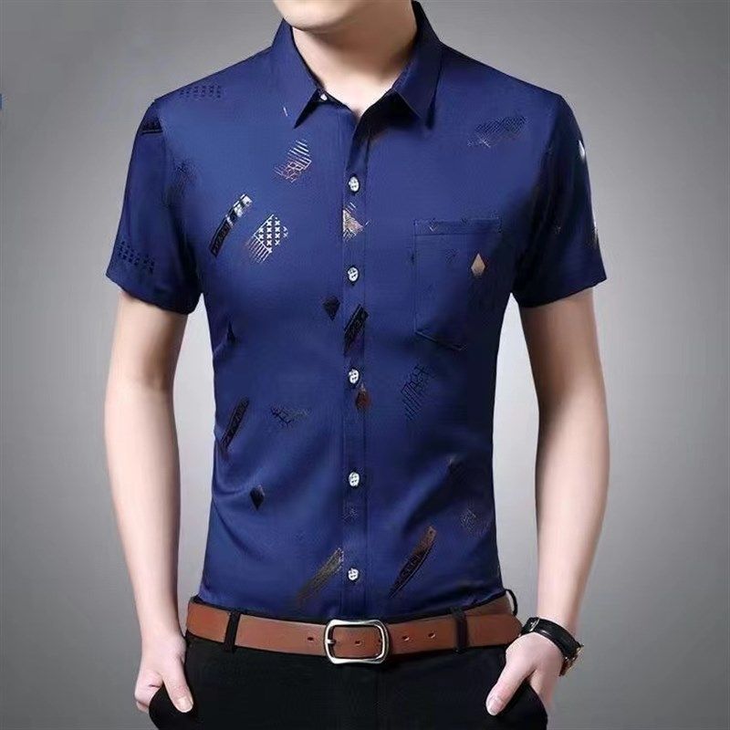 中年男士衬衫夏季中老年人冰丝衬衣短袖薄款爸爸S夏装宽松老头开