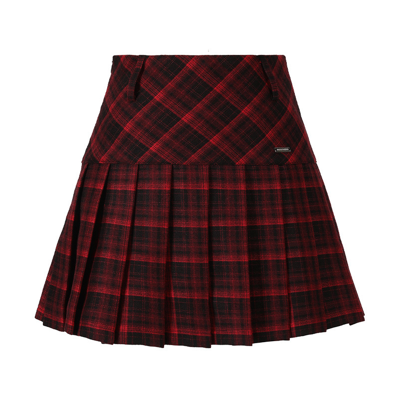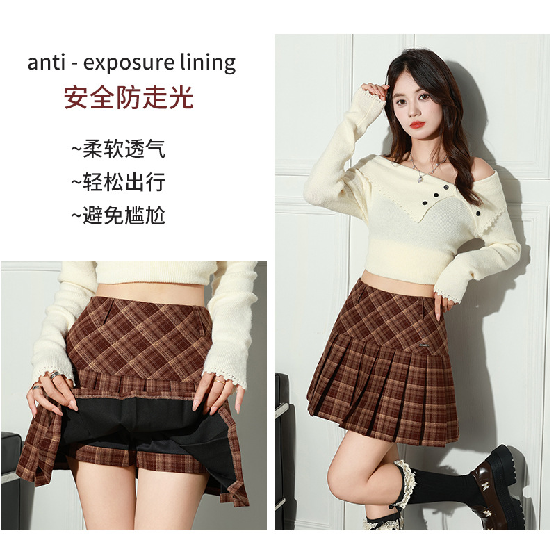 2025秋冬新款复古格纹百褶短裙学院风高腰防走光半身裙毛呢