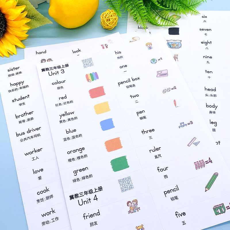 新版冀教版三年级单词便利贴