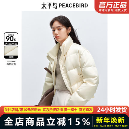 太平鸟女缎面羽绒服24冬针织拼接立领面包服保暖外套AAACE422E01