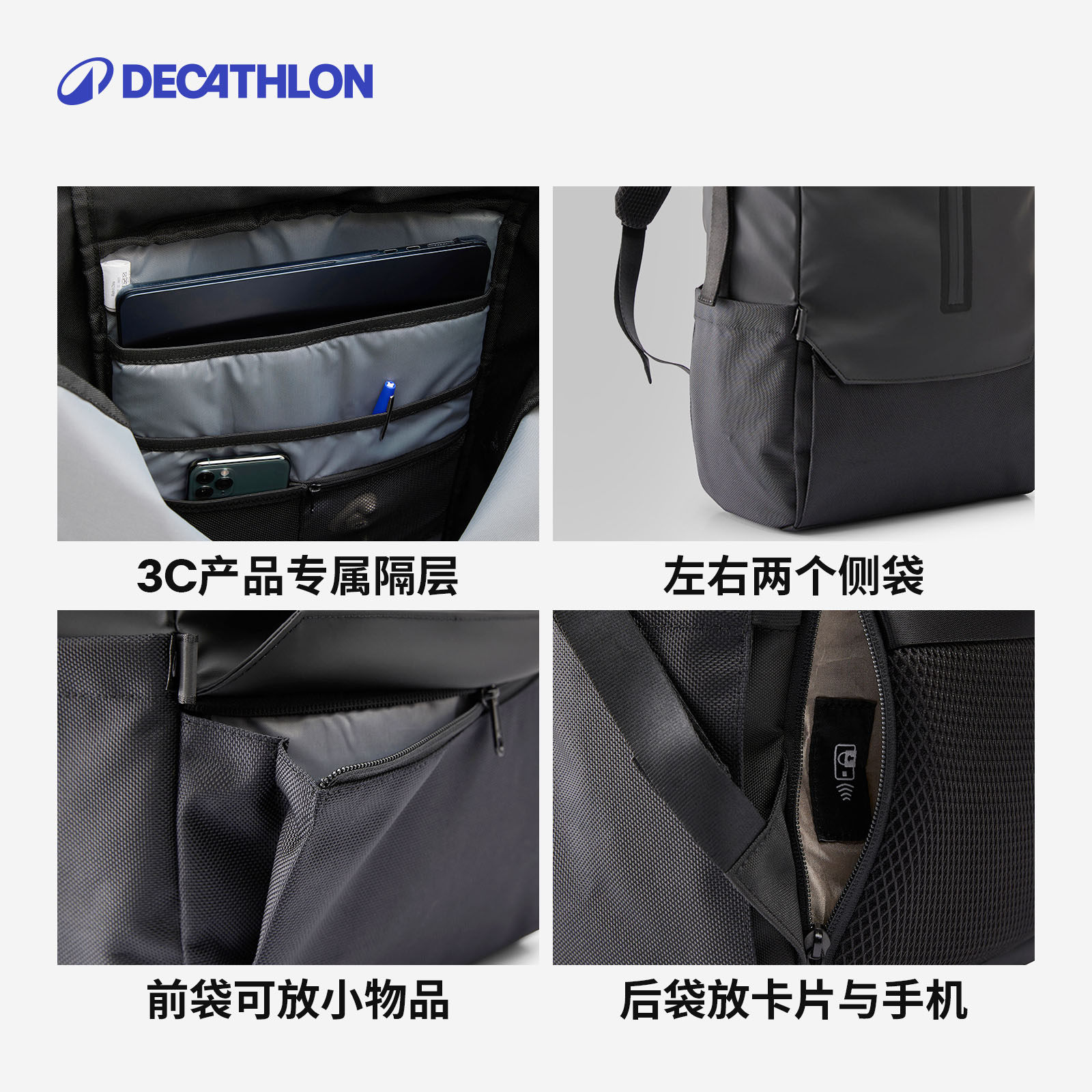 迪卡侬双肩包骑行通勤旅行背包
