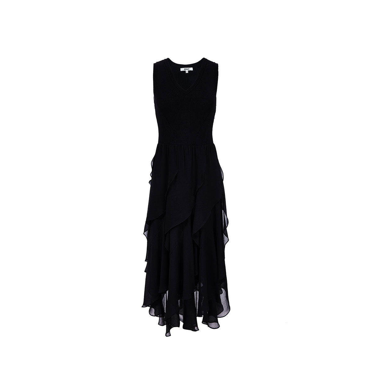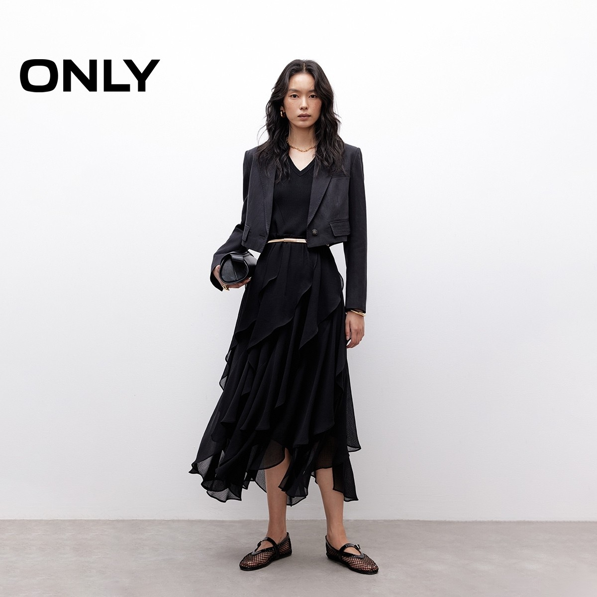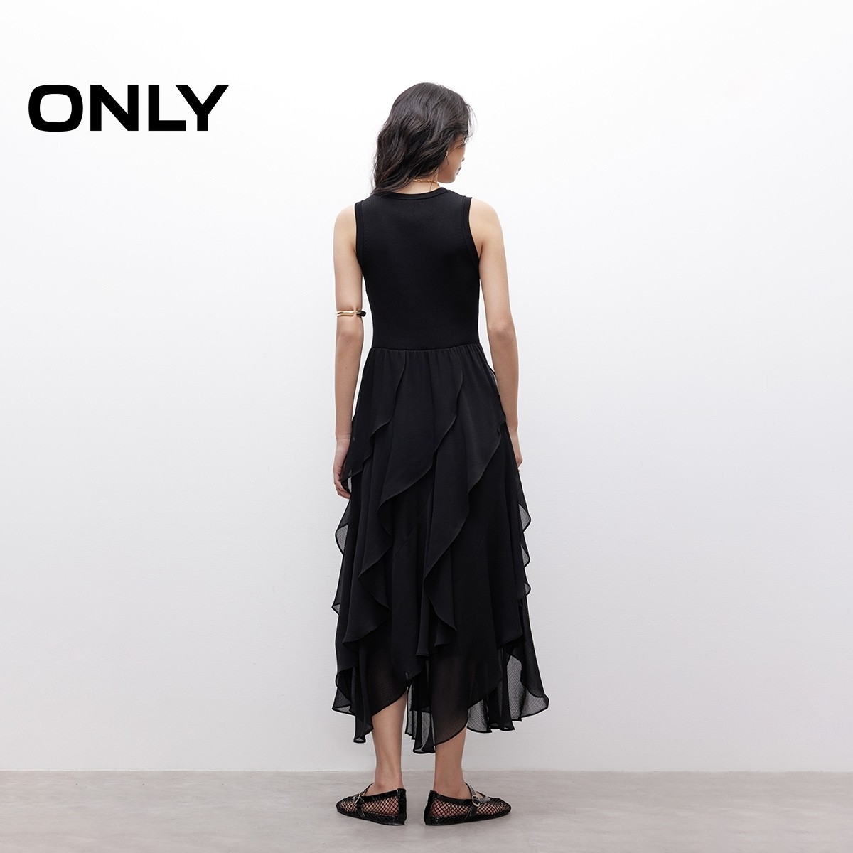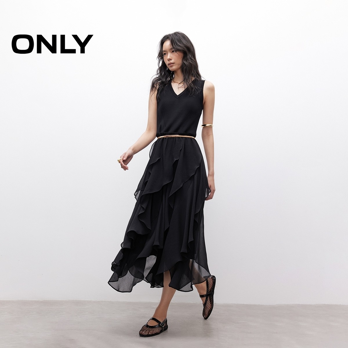 v区绫致ONLY2025夏季新款浪漫法式V领修身中长裙无袖连衣裙女