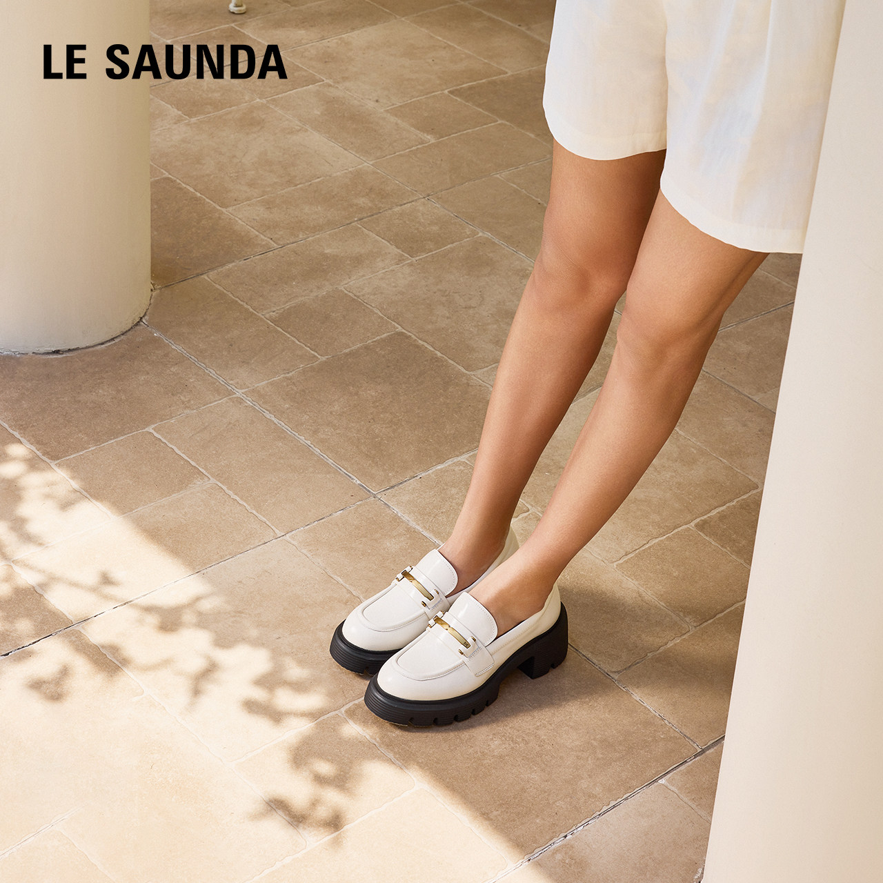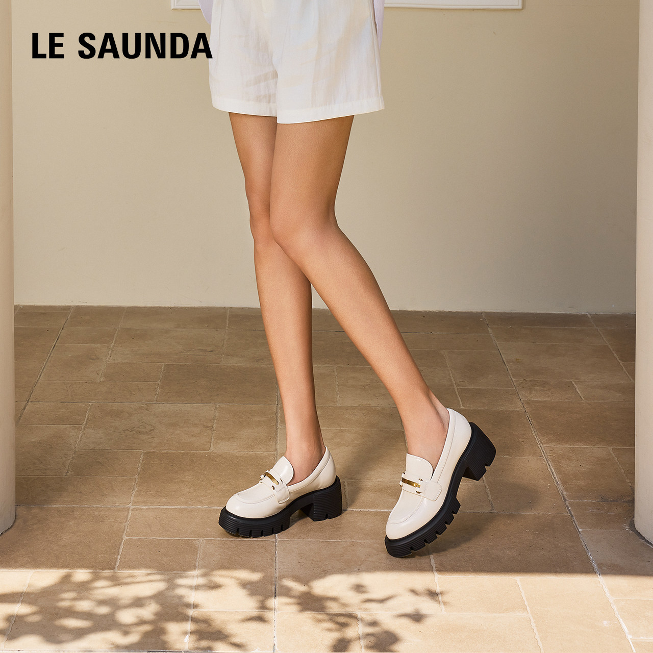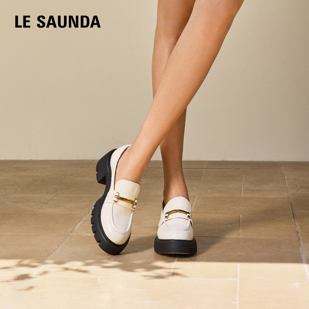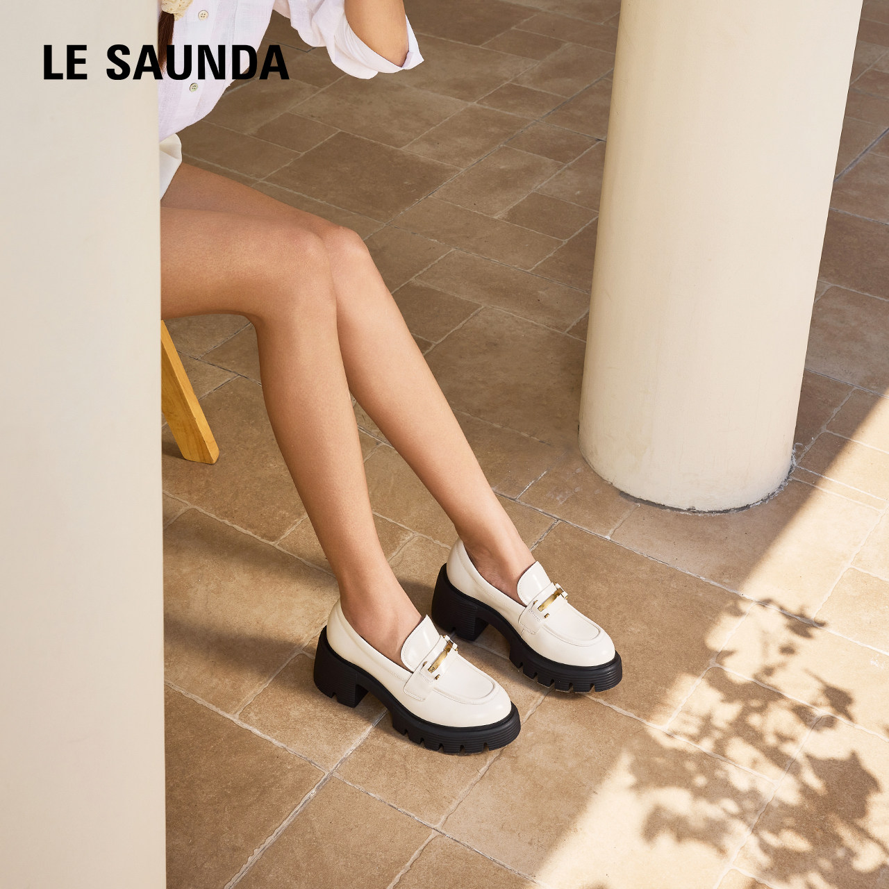 莱尔斯丹粗跟厚底真皮乐福鞋女