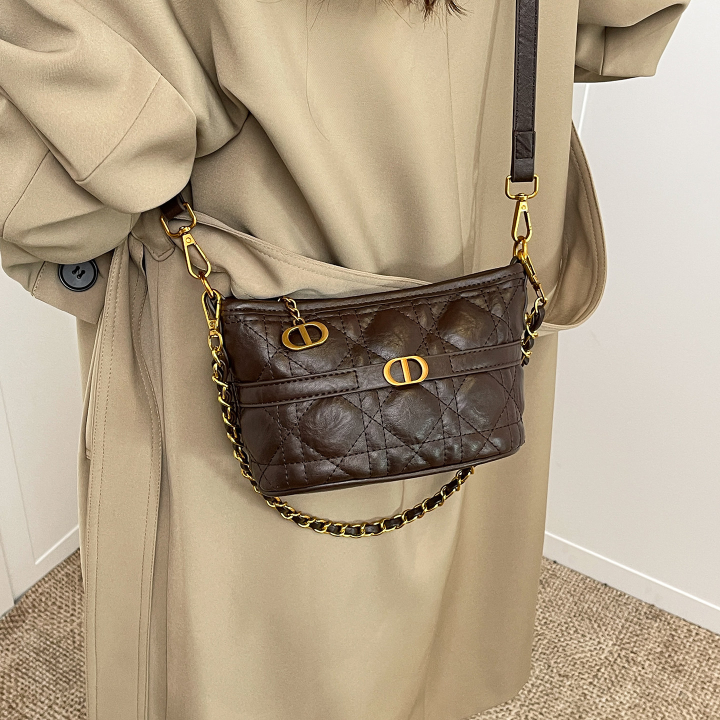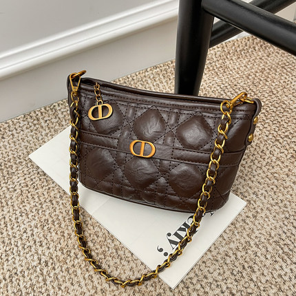 小香风菱格链条包腋下包女2025新款时尚潮流绣线元宝包百搭斜挎包