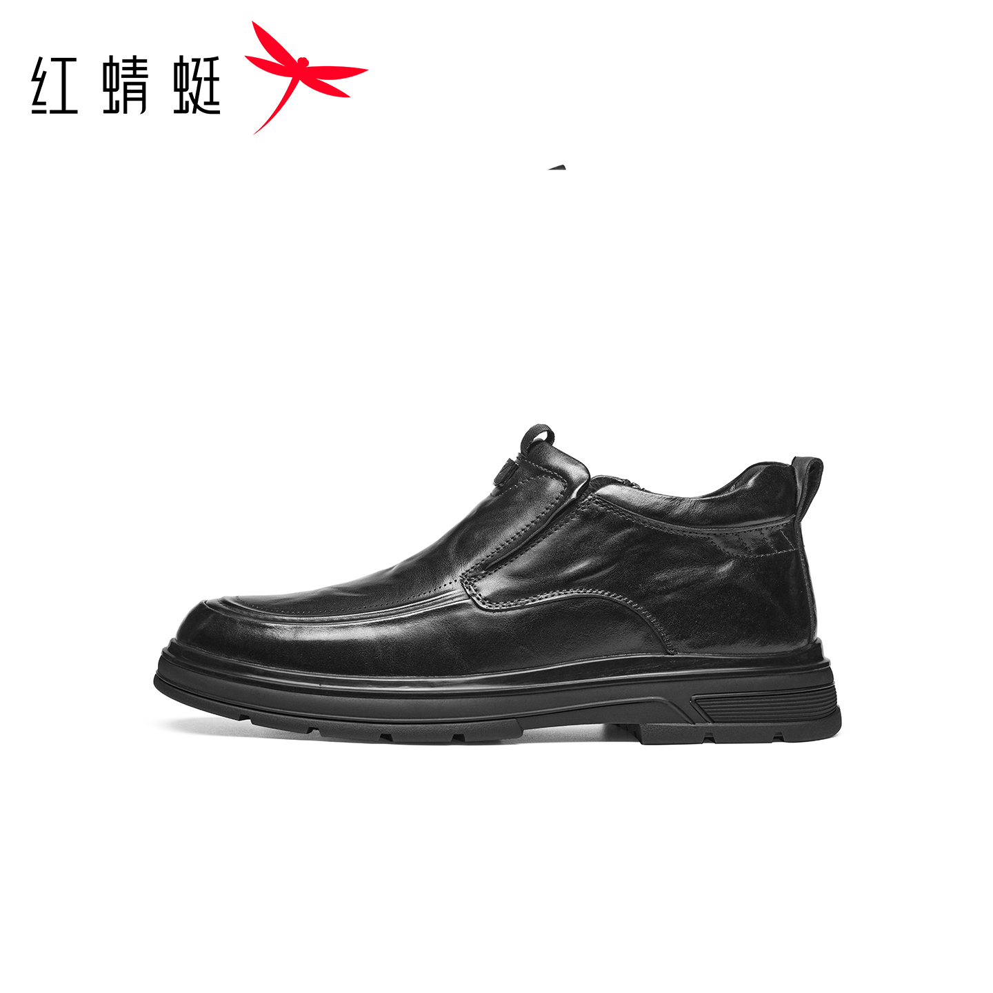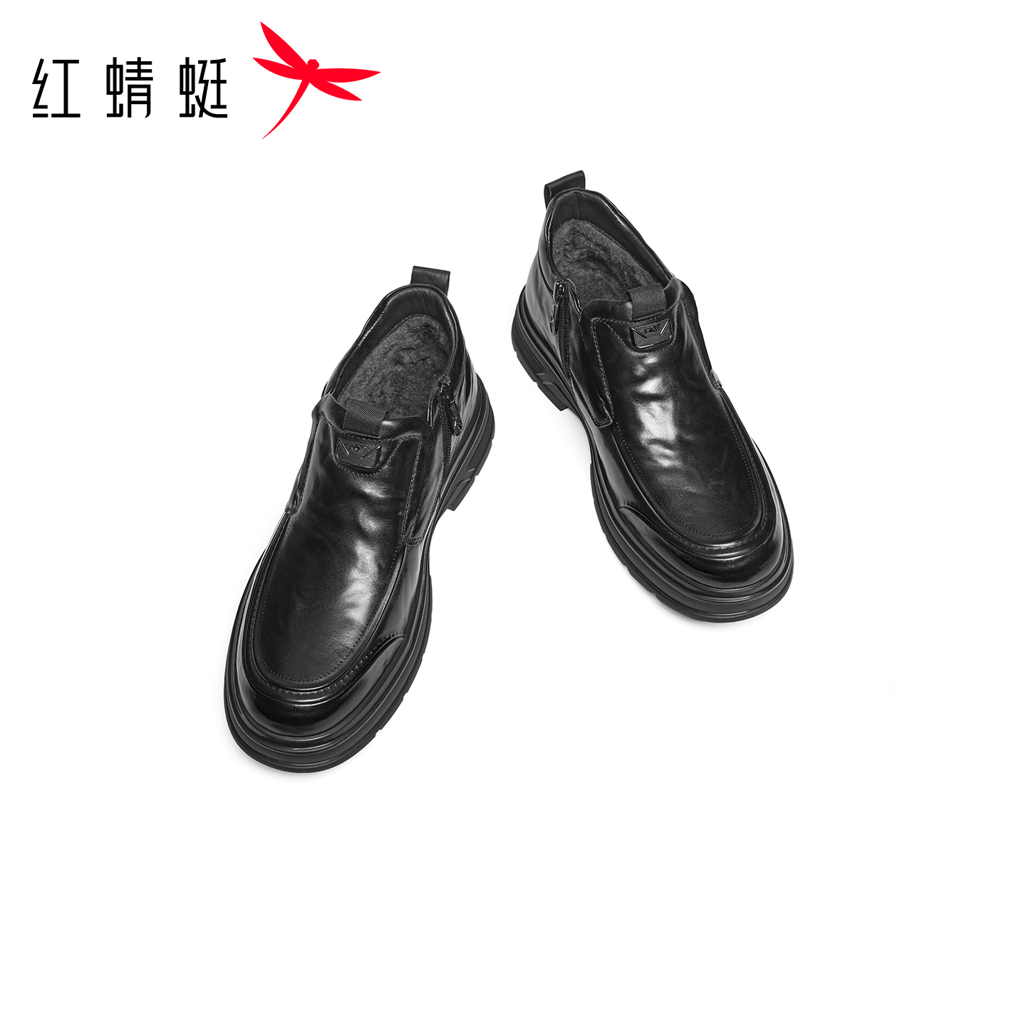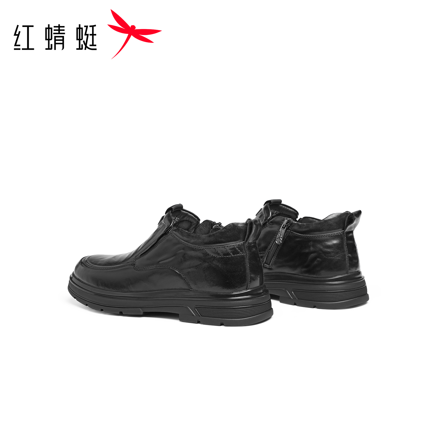 红蜻蜓加绒保暖高帮男士皮鞋