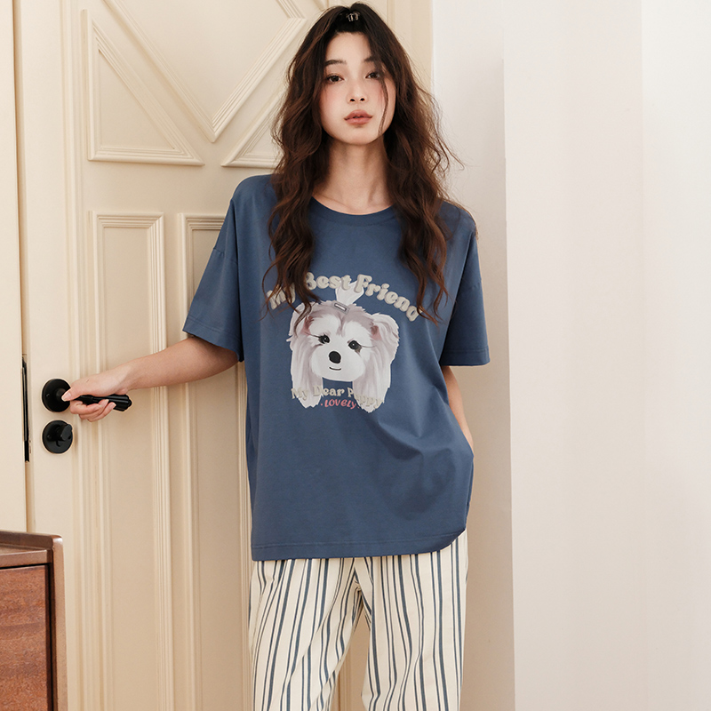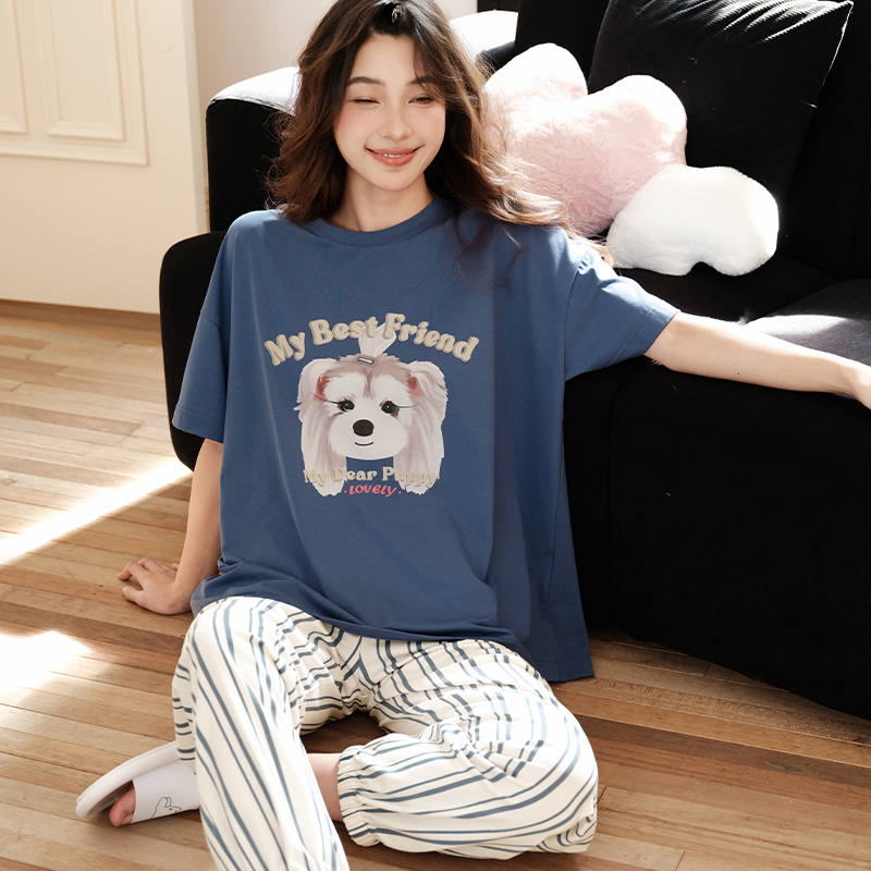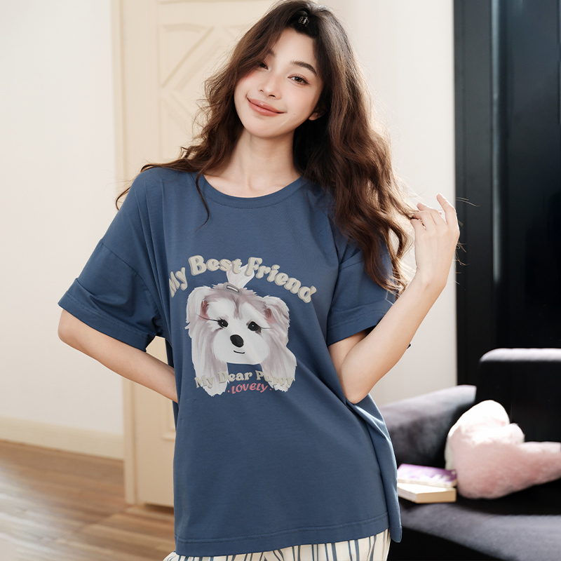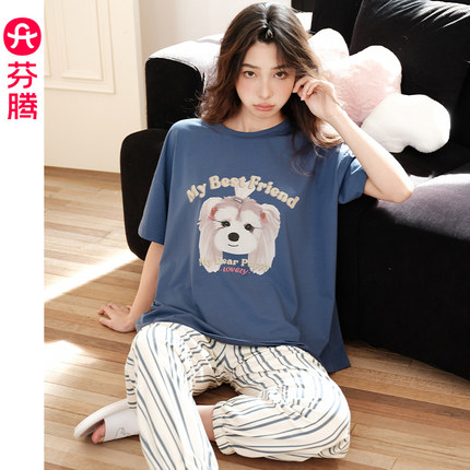 芬腾女夏季纯棉薄款短袖睡衣套装