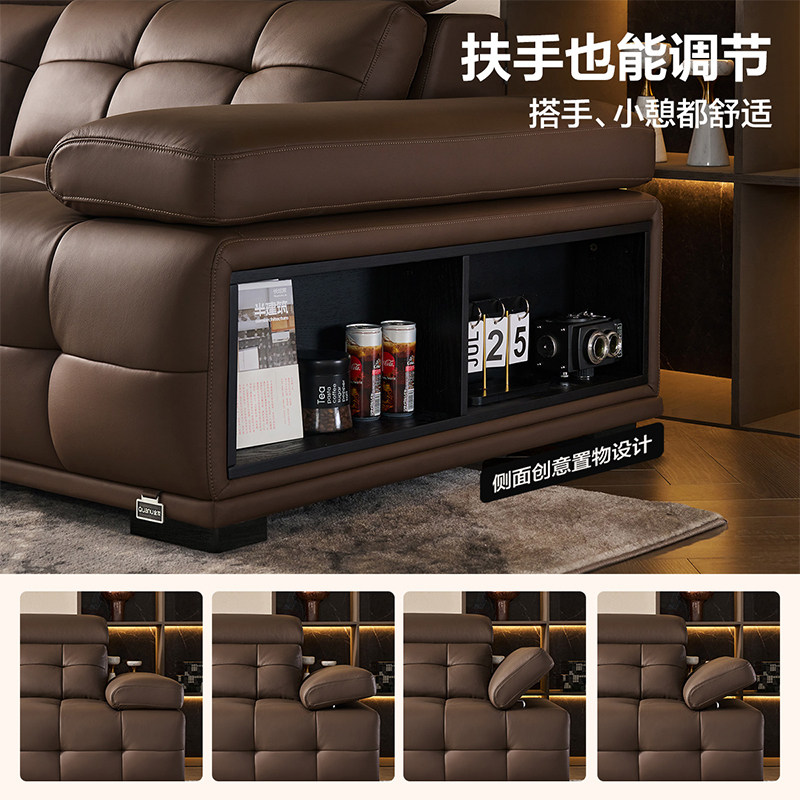 全友家居现代简约劳伦斯沙发2025新款客厅直排头层牛皮多功能沙发
