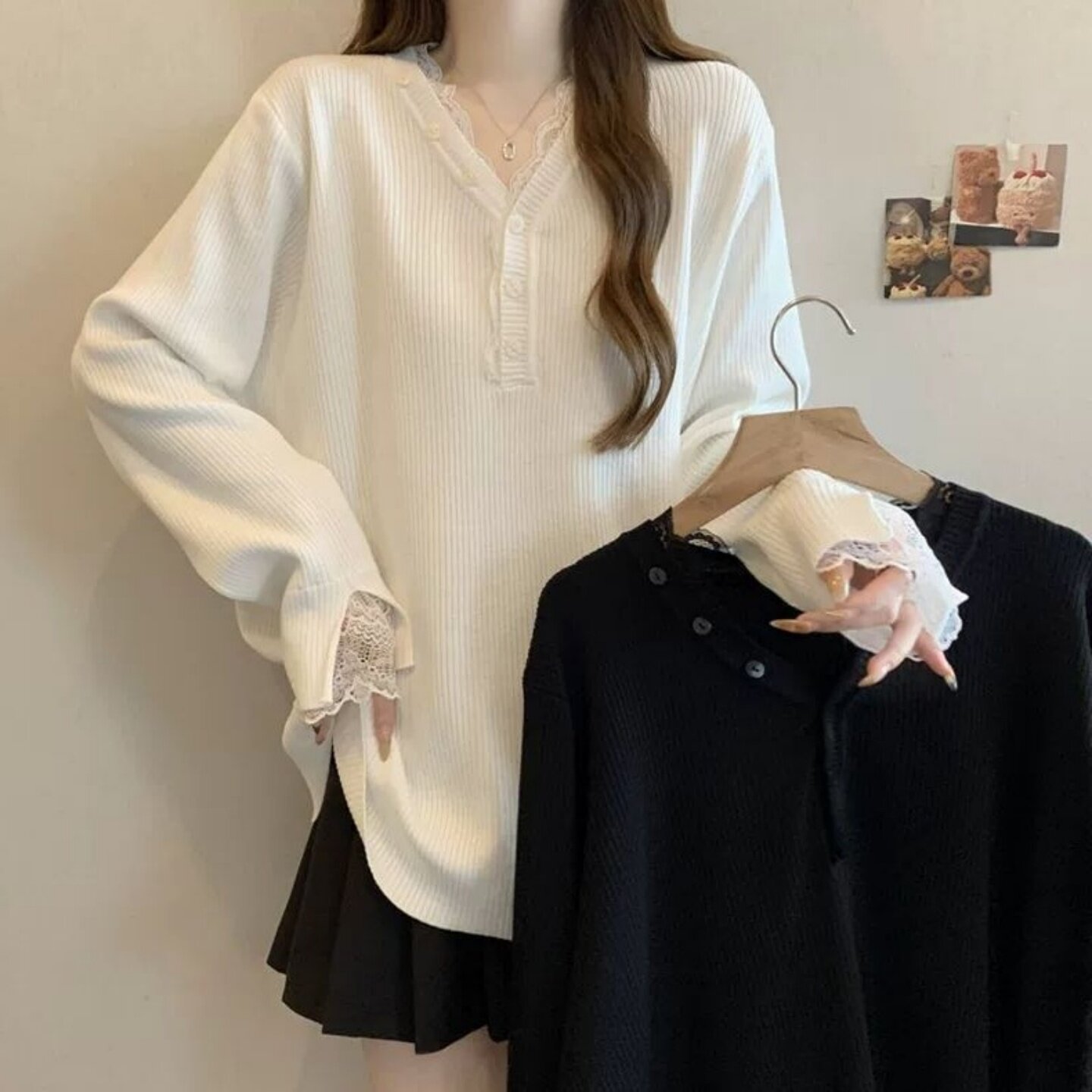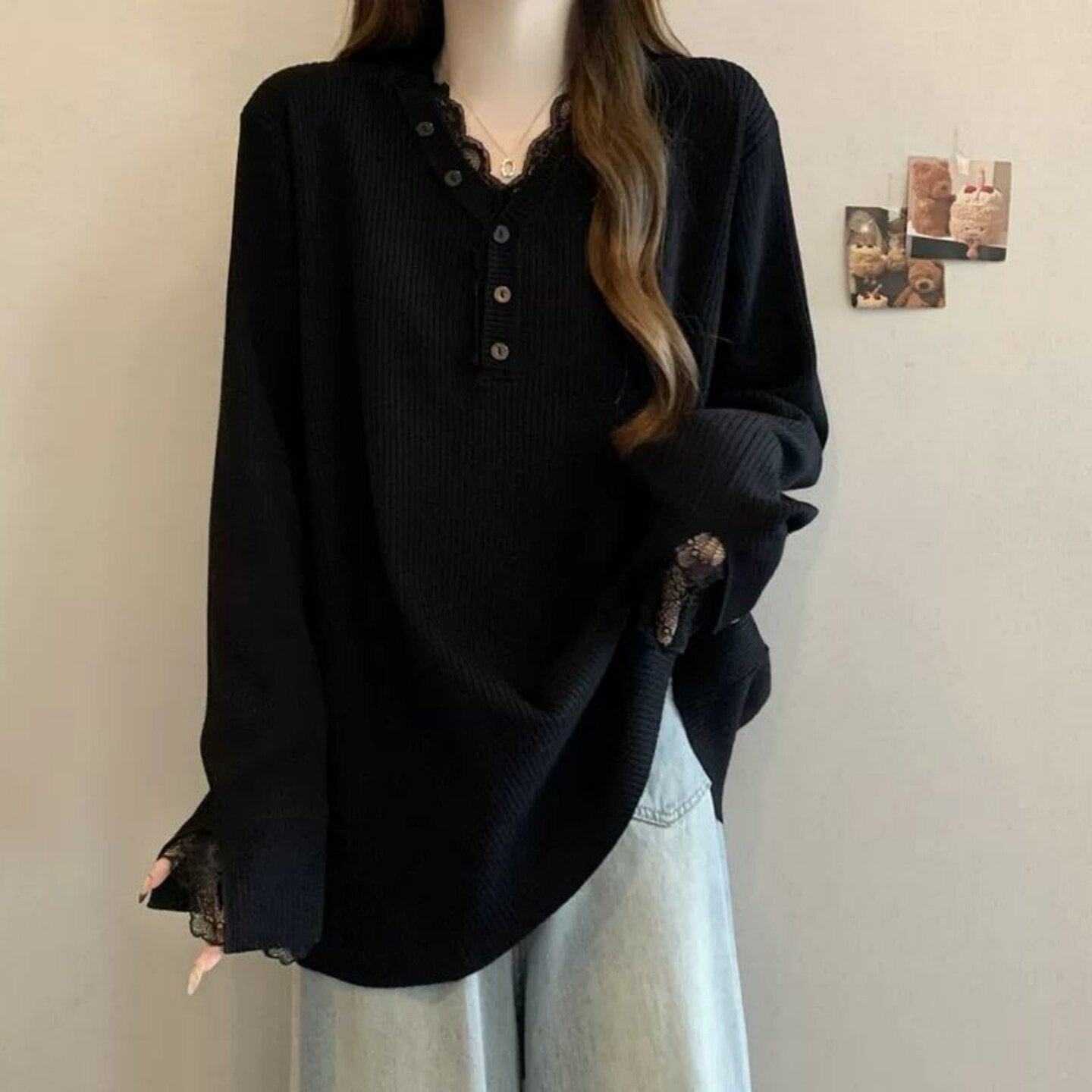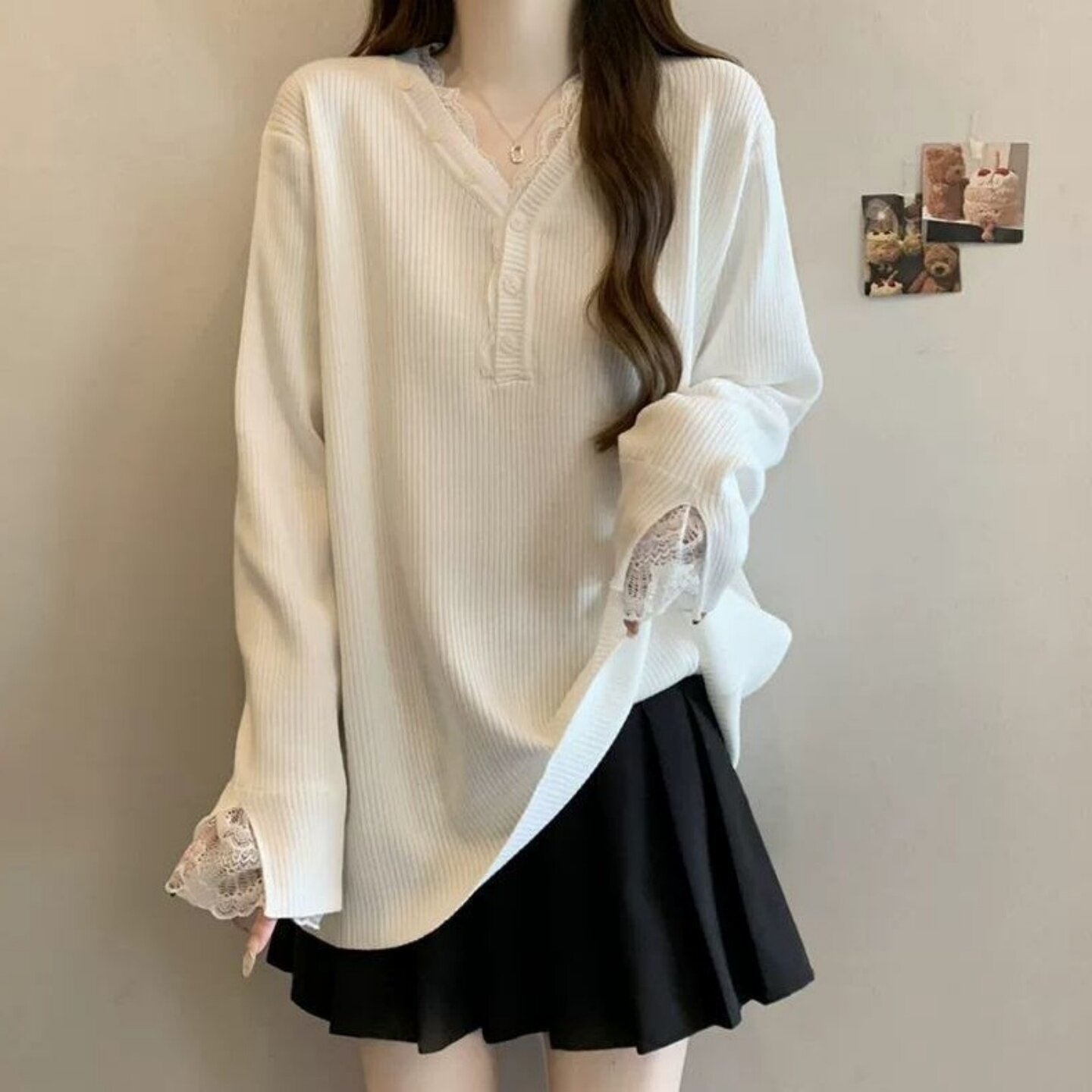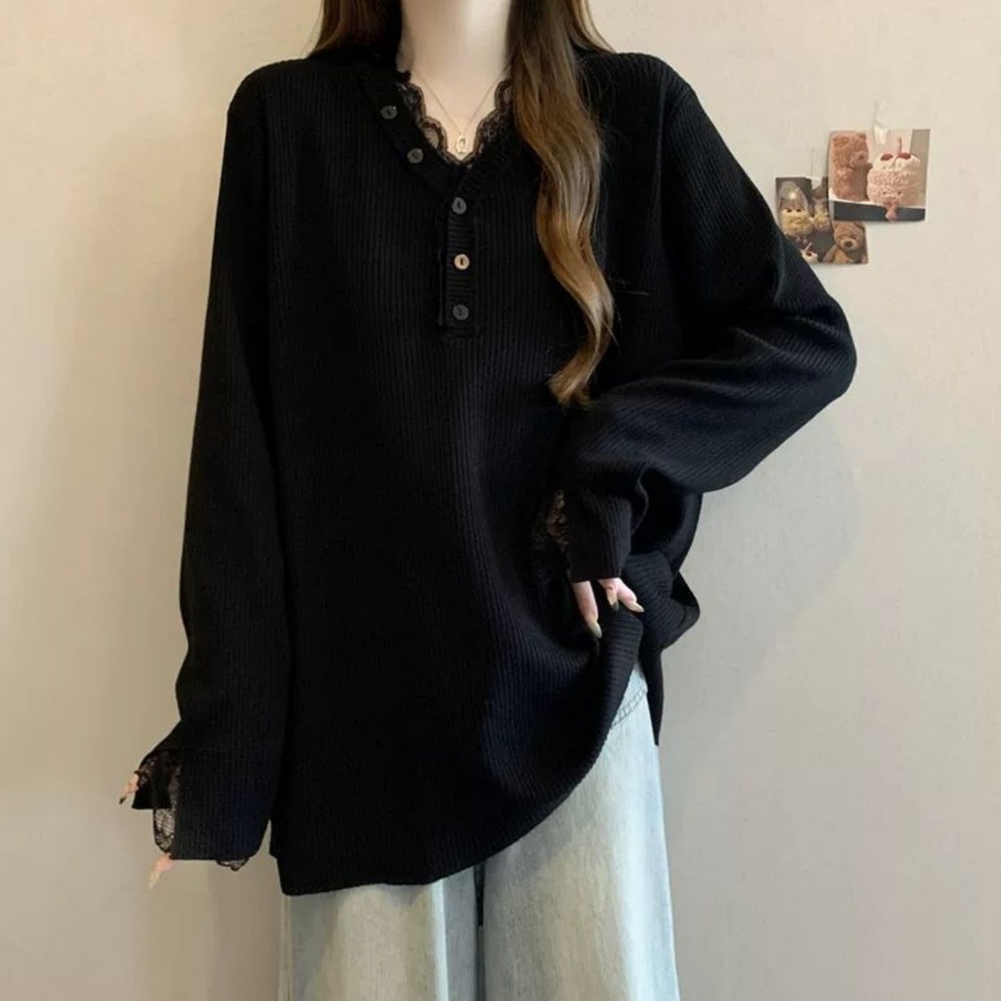 时髦宽松休闲显瘦蕾丝长袖上衣