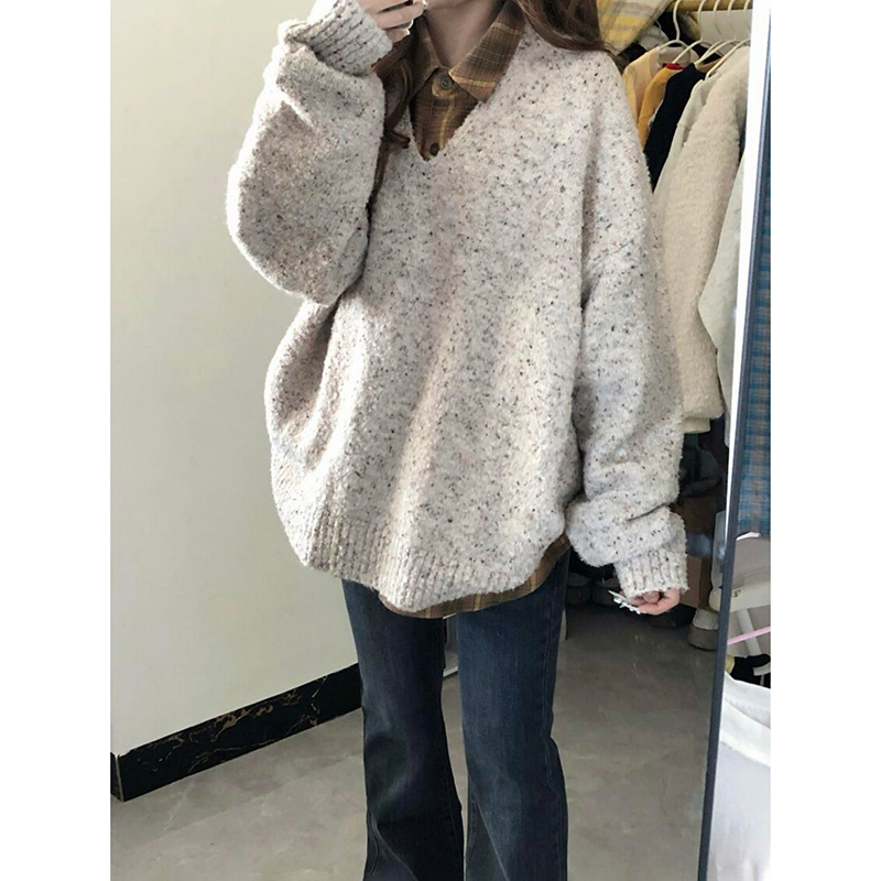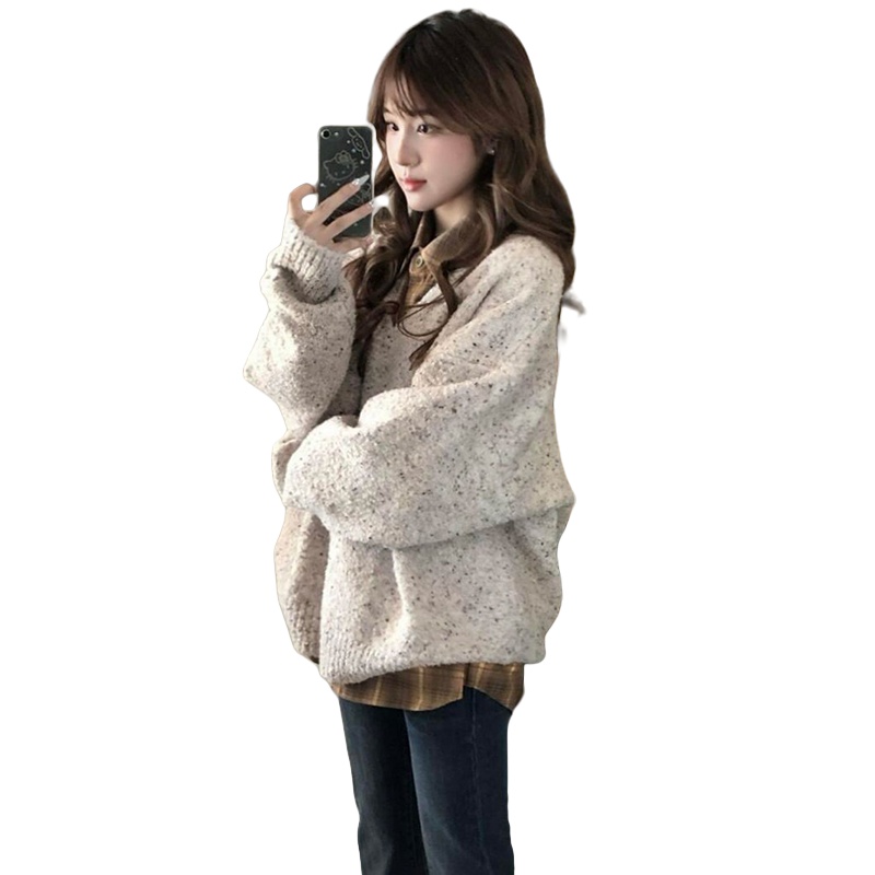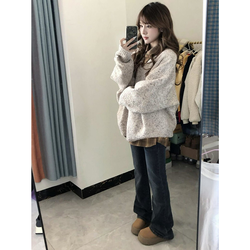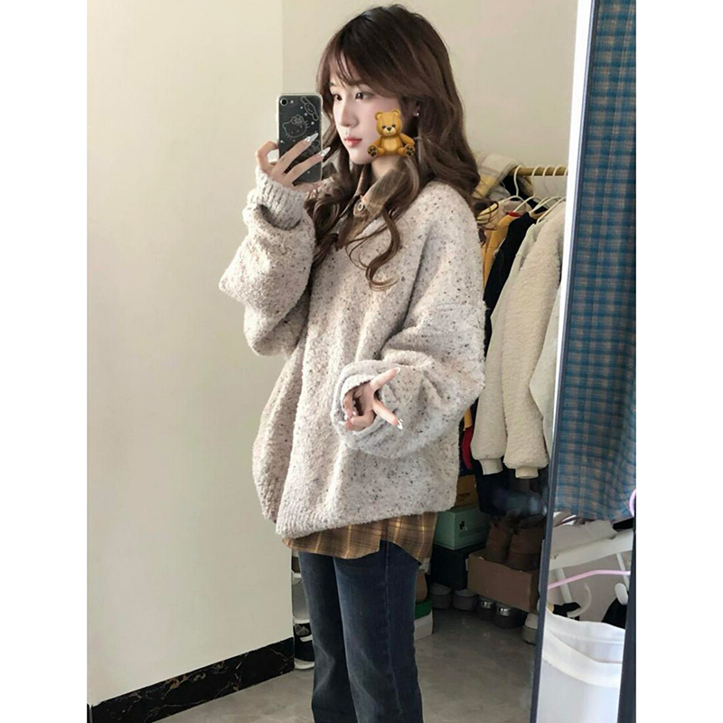日系复古休闲穿搭秋冬款软糯针织衫毛衣女叠穿格纹长袖衬衫两件套