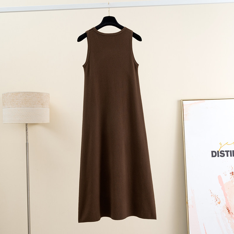 针织背心连衣裙女秋冬新款宽松显瘦中长款过膝无袖内搭毛衣打底裙