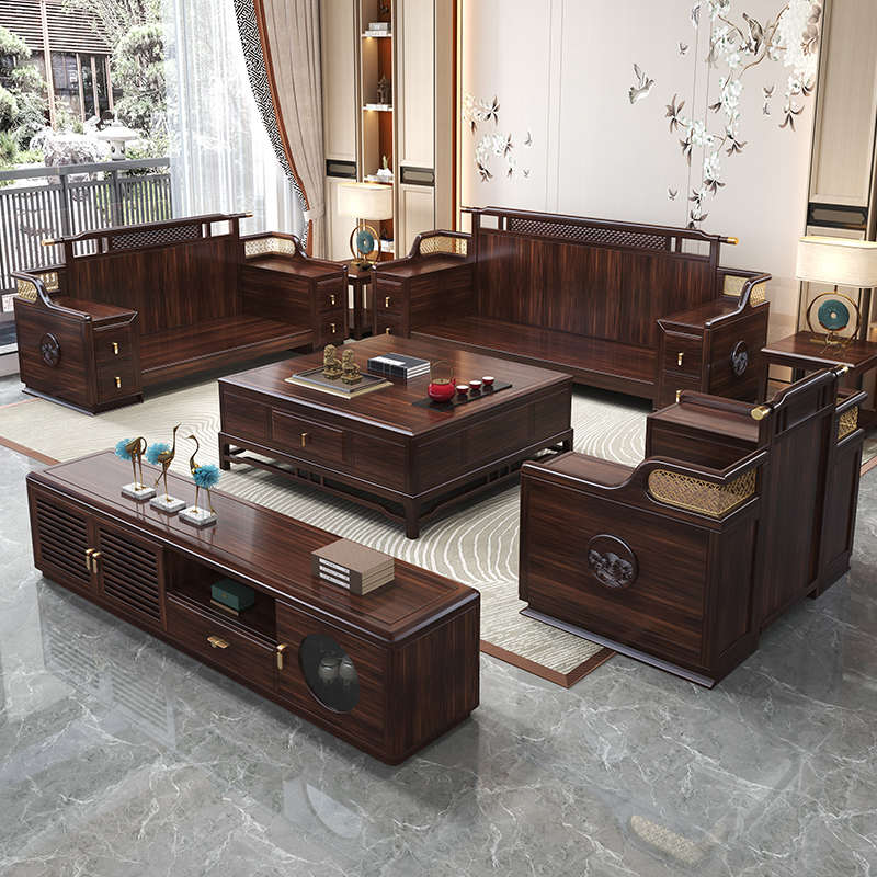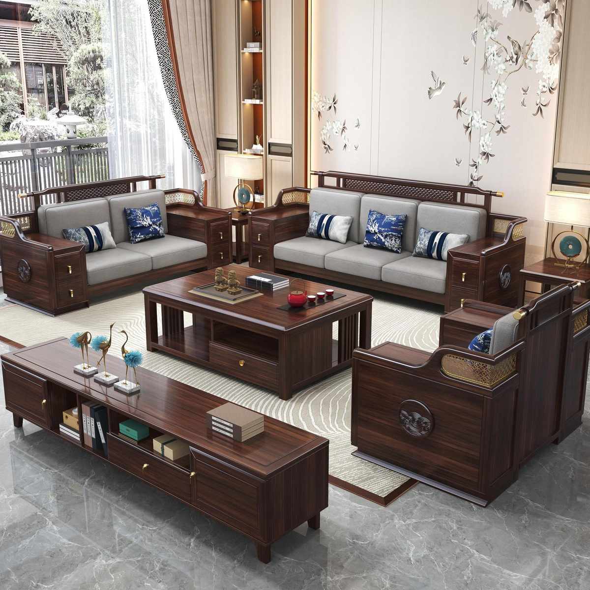 乌金木实木沙发家用客厅组合新中式禅意贵妃转角大小户型轻奢家具