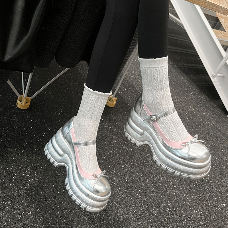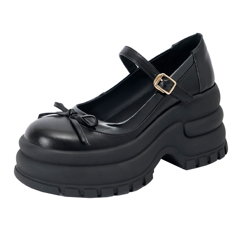 真皮厚底法式玛丽珍鞋女2025新款蝴蝶结矮子乐单鞋一字扣带高跟鞋