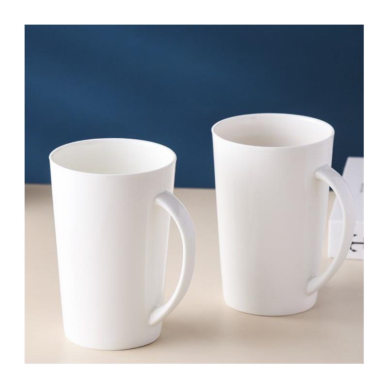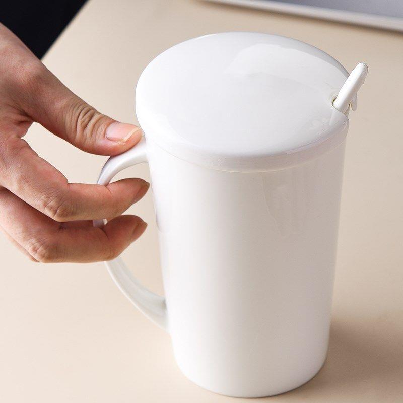 白色骨瓷釉下彩水杯子马克杯带盖大容量陶瓷茶杯咖啡杯家用耐高温