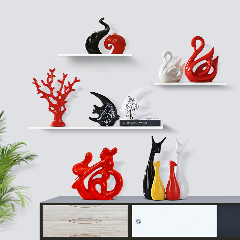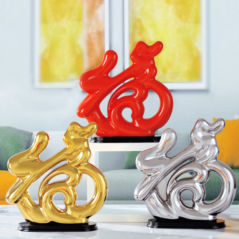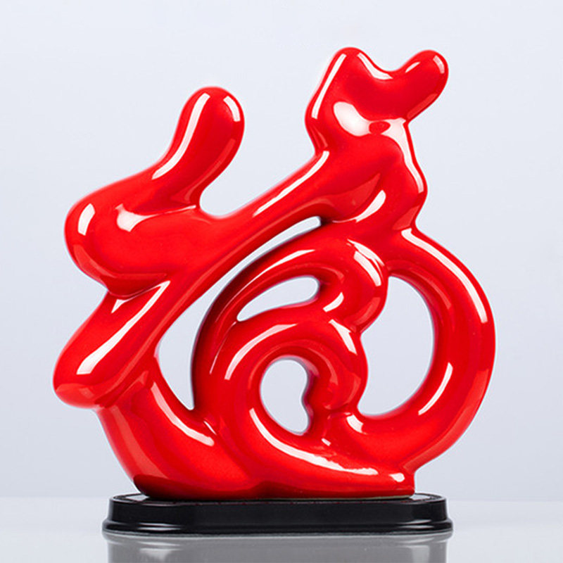 宏赫景德镇现代中式客厅电视酒架酒柜红福字装饰家居装修小摆件