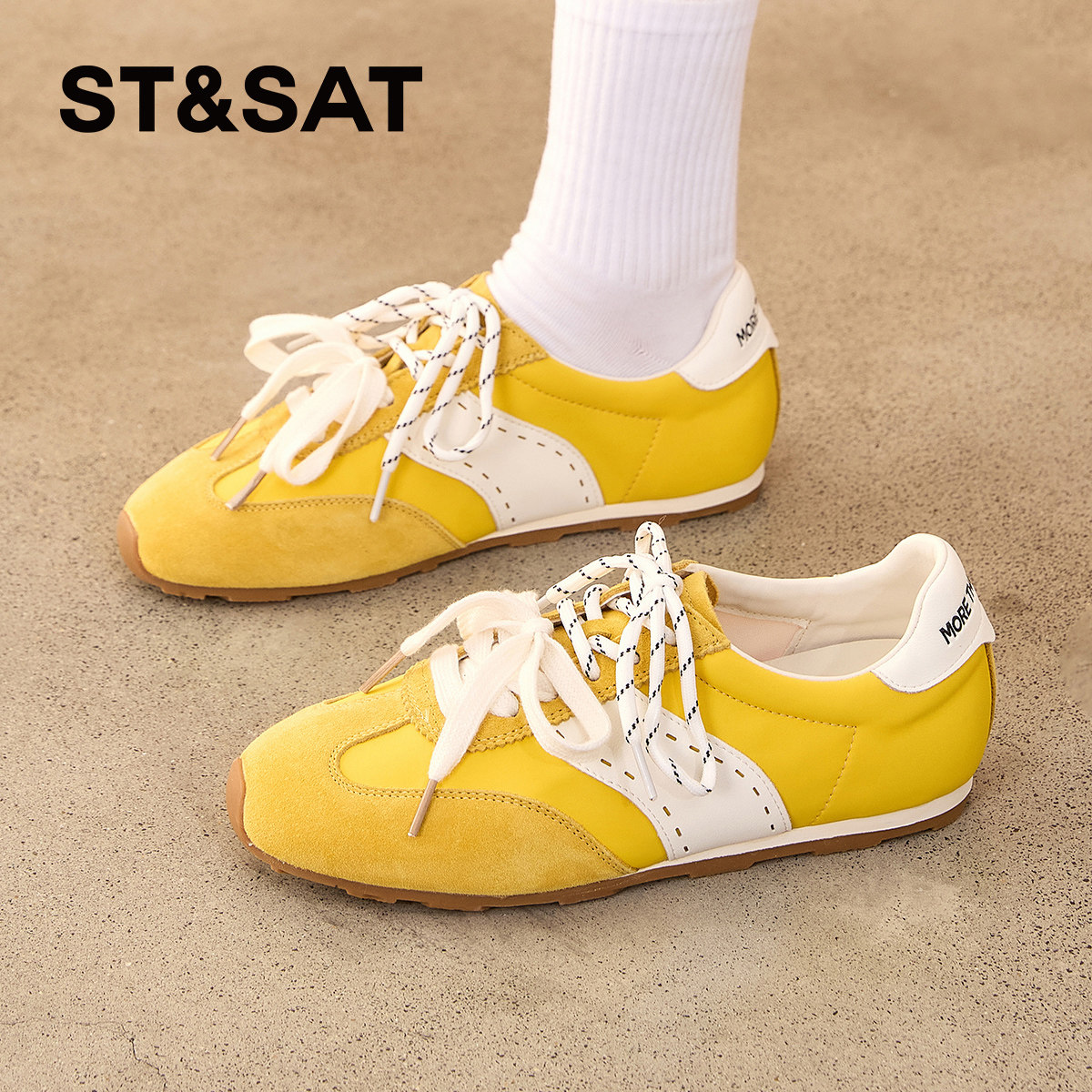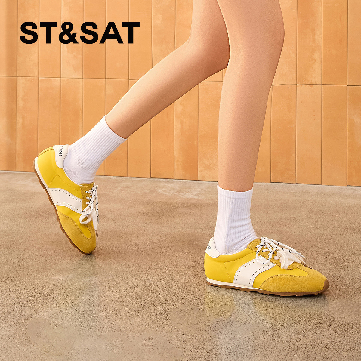 星期六厚底德训鞋双系带黄色