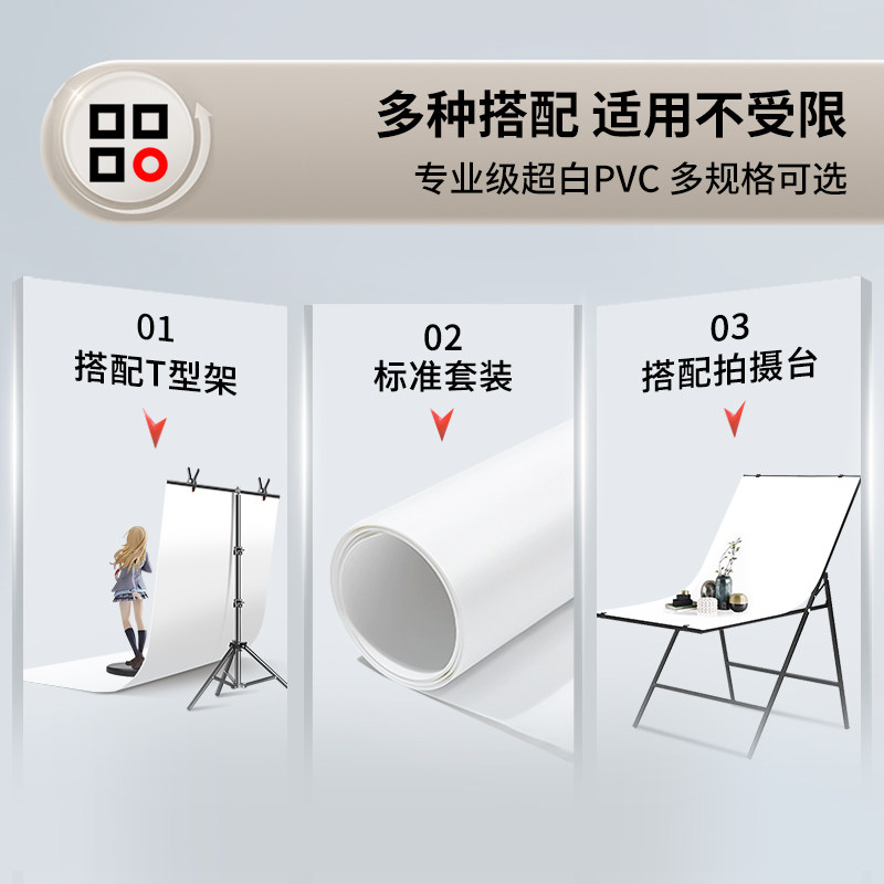 锐富图白色摄影拍照背景纸静物白纸淘宝PVC板产品拍摄影棚布置道具纯白布照片墙直播架幕布挂支架白底图架子