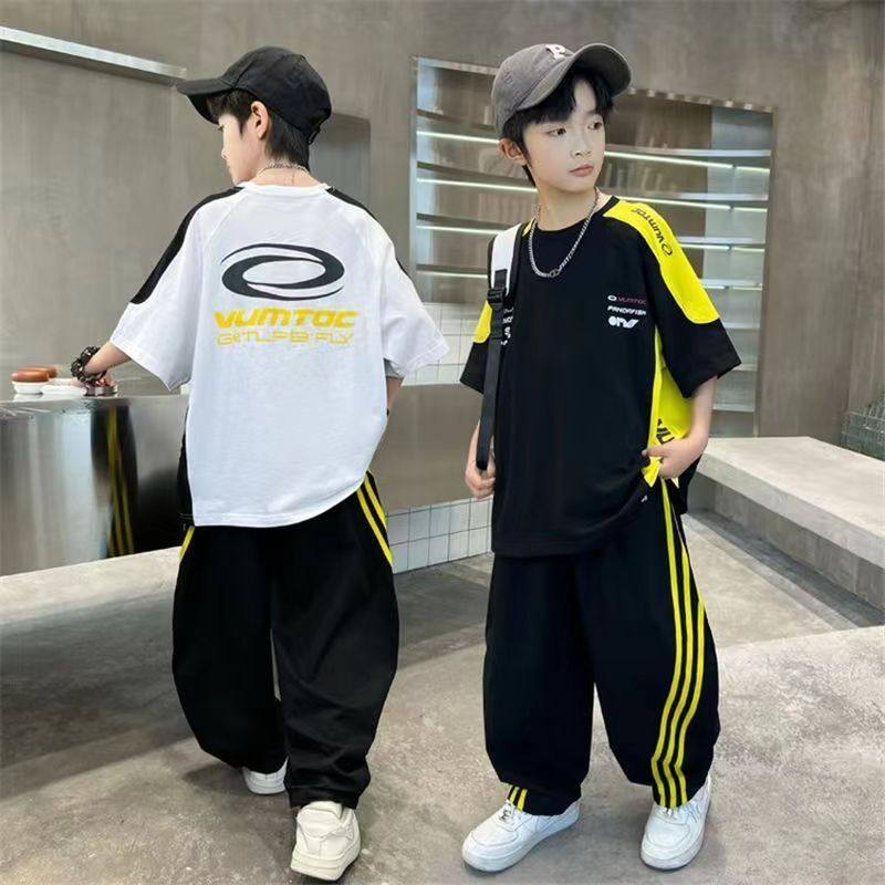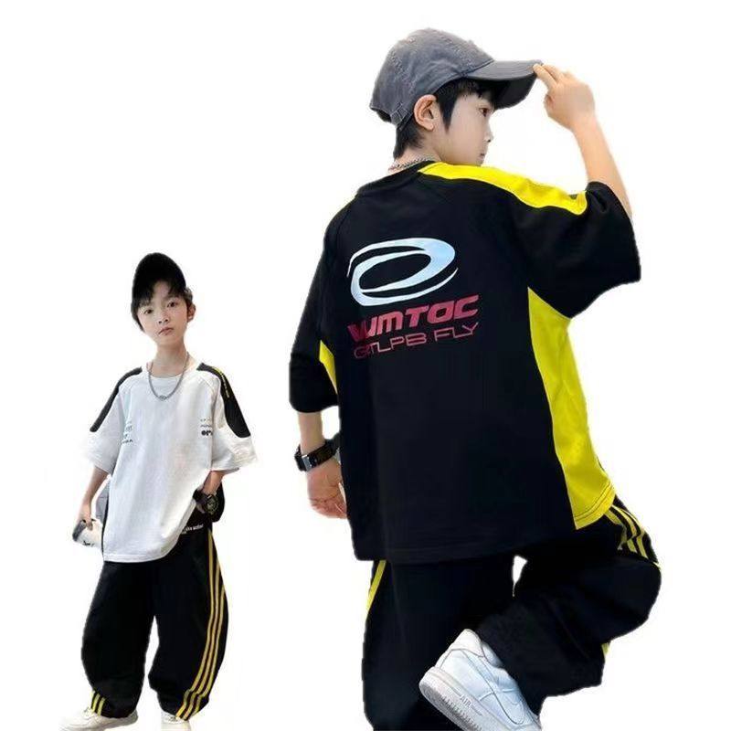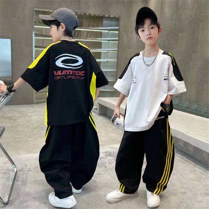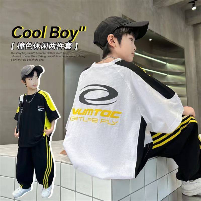 男童夏装短袖套装2025新款中大童韩版夏季儿童夏款男孩长裤两件套