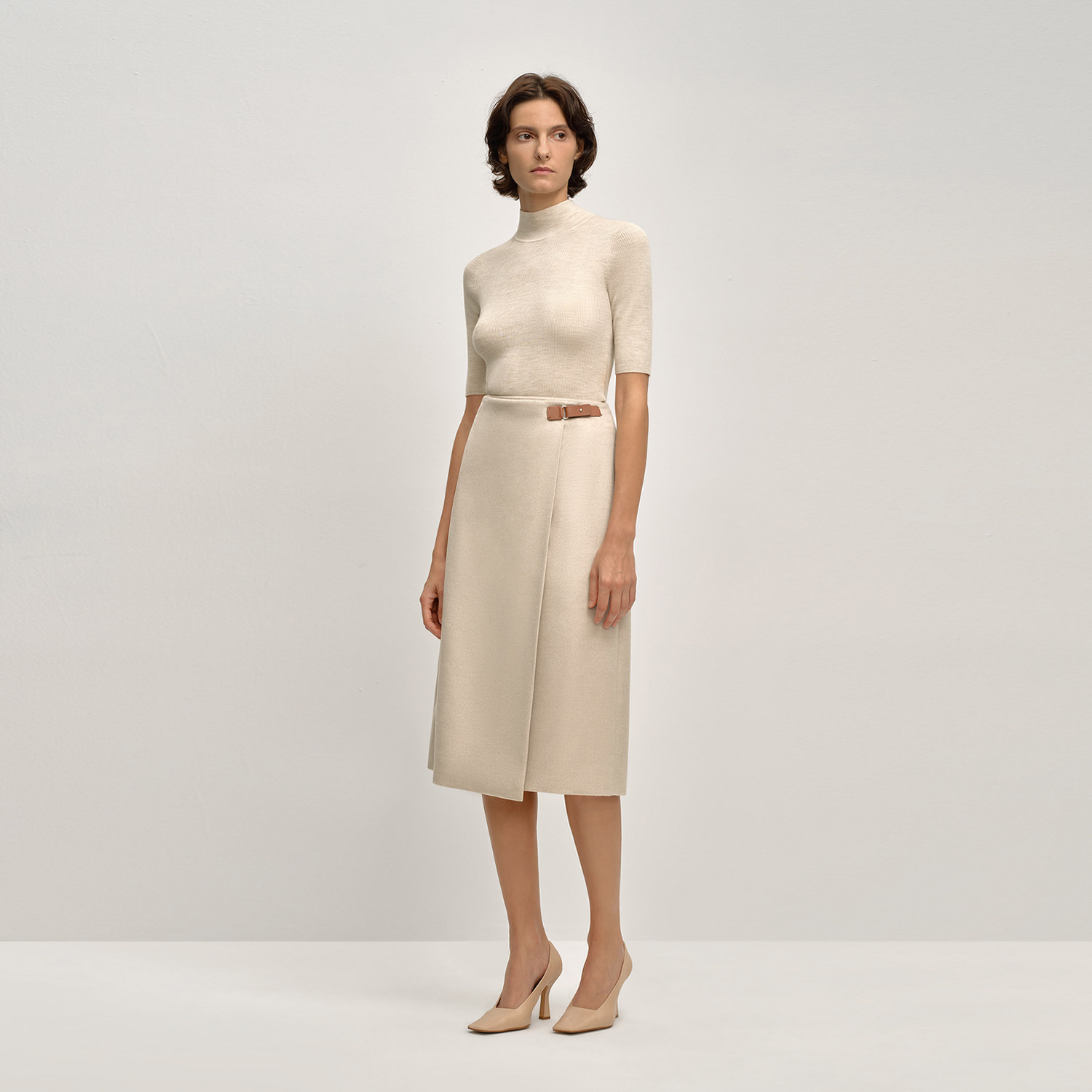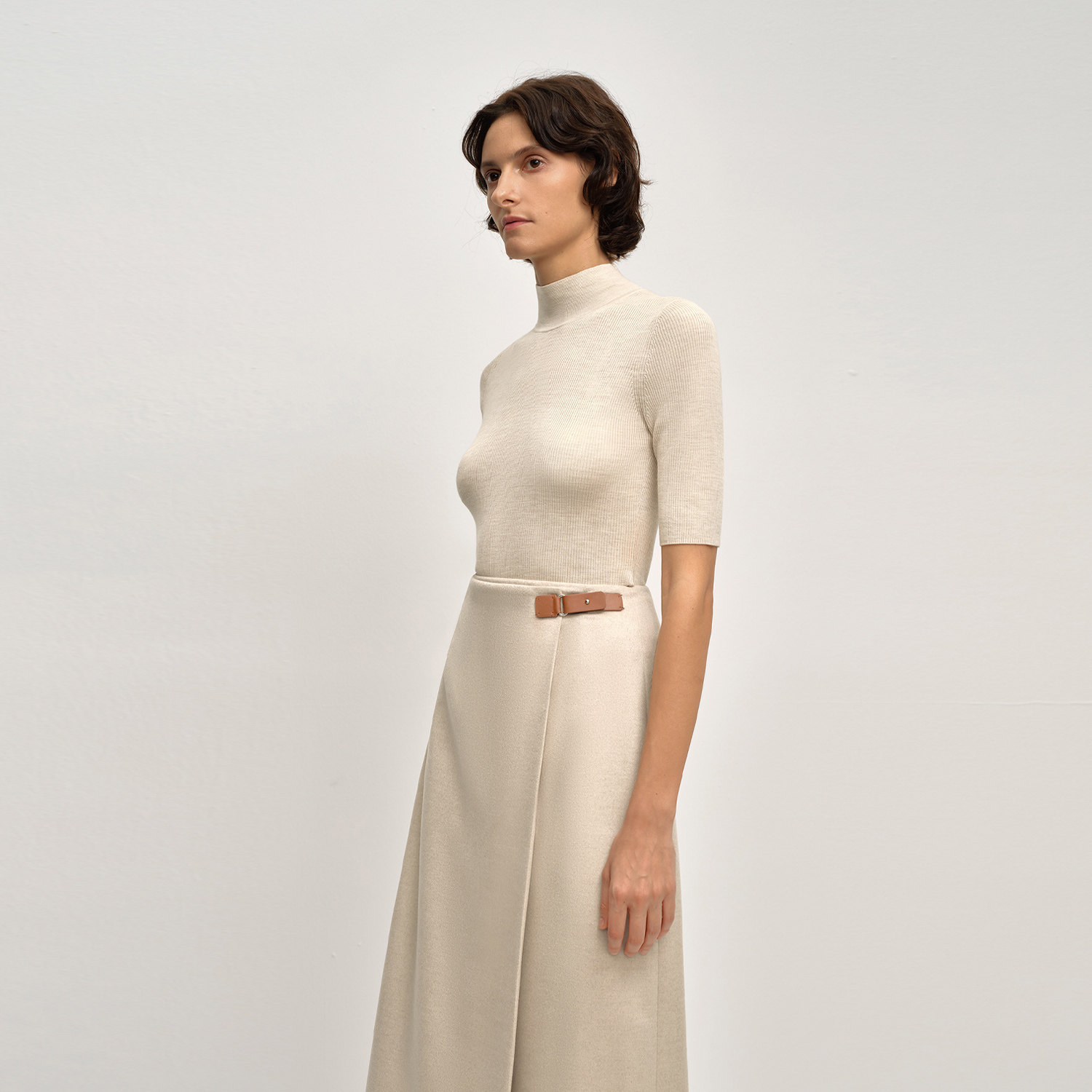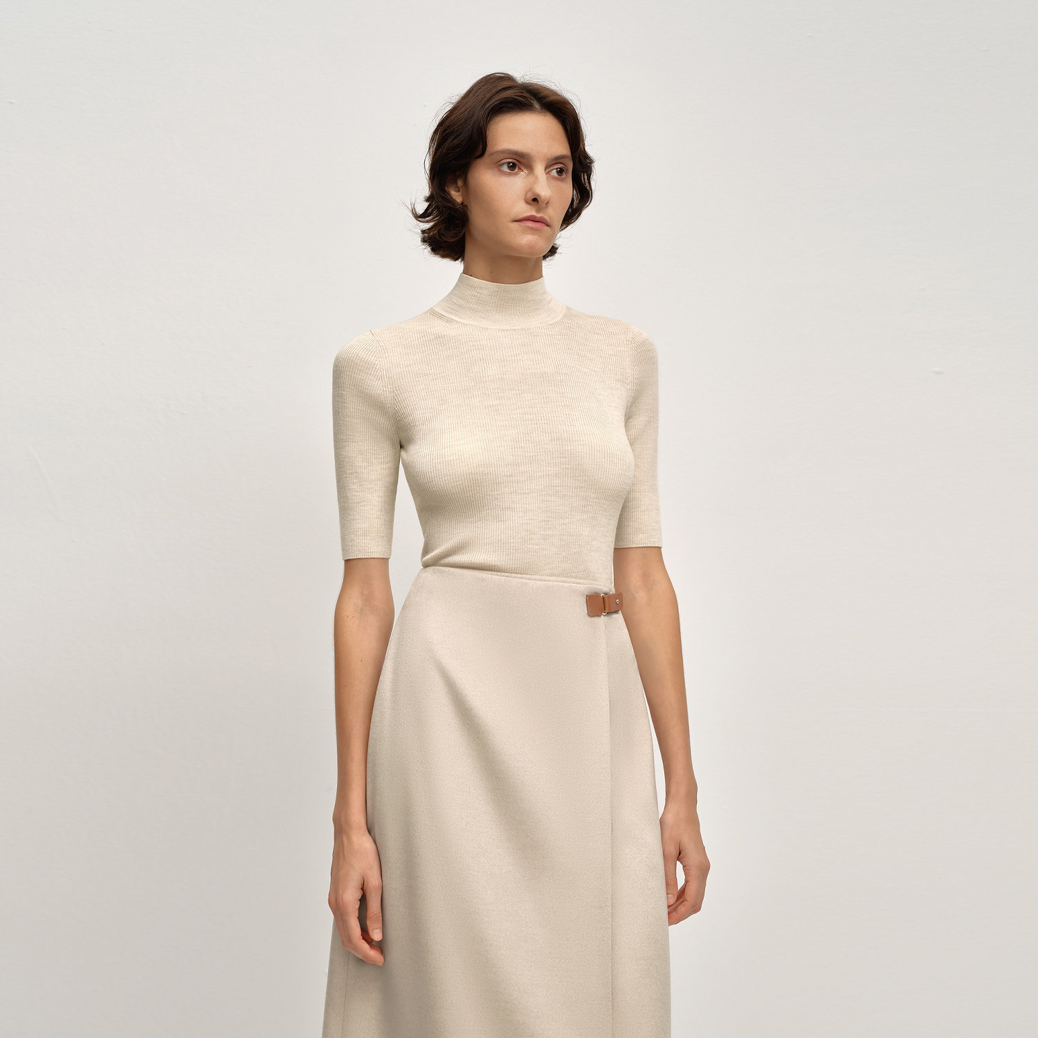 【黄金羊毛】OVV2025秋冬新款女装舒弹半高领简约短袖针织衫