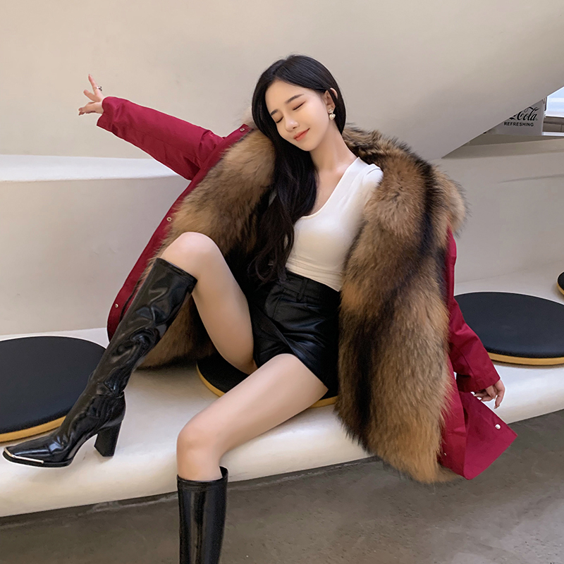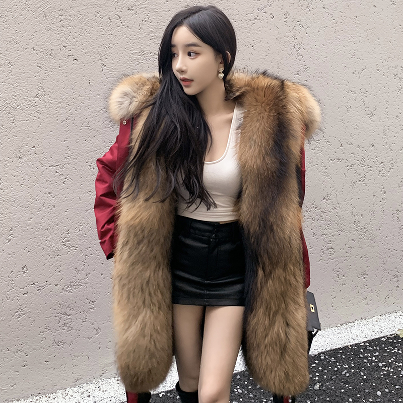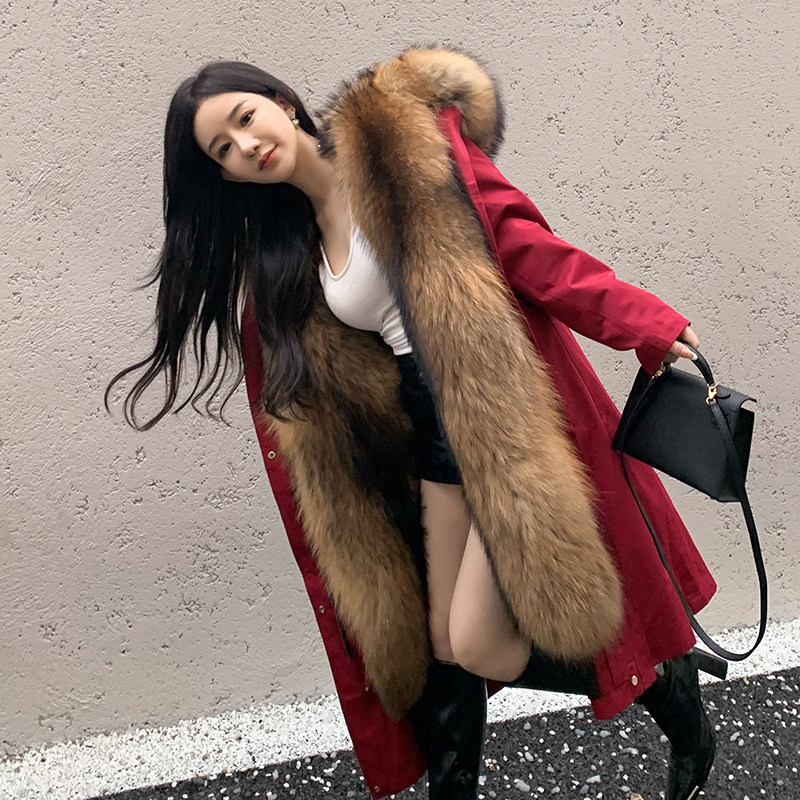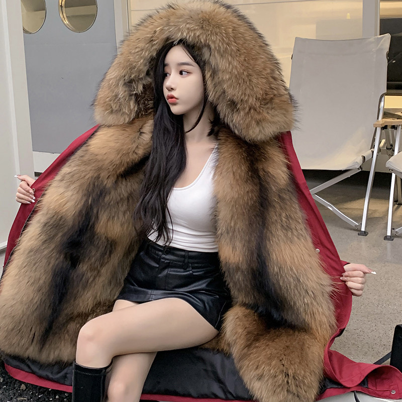 派克服女2025新款冬季连帽可拆卸内胆皮毛一体长款仿皮草外套大衣