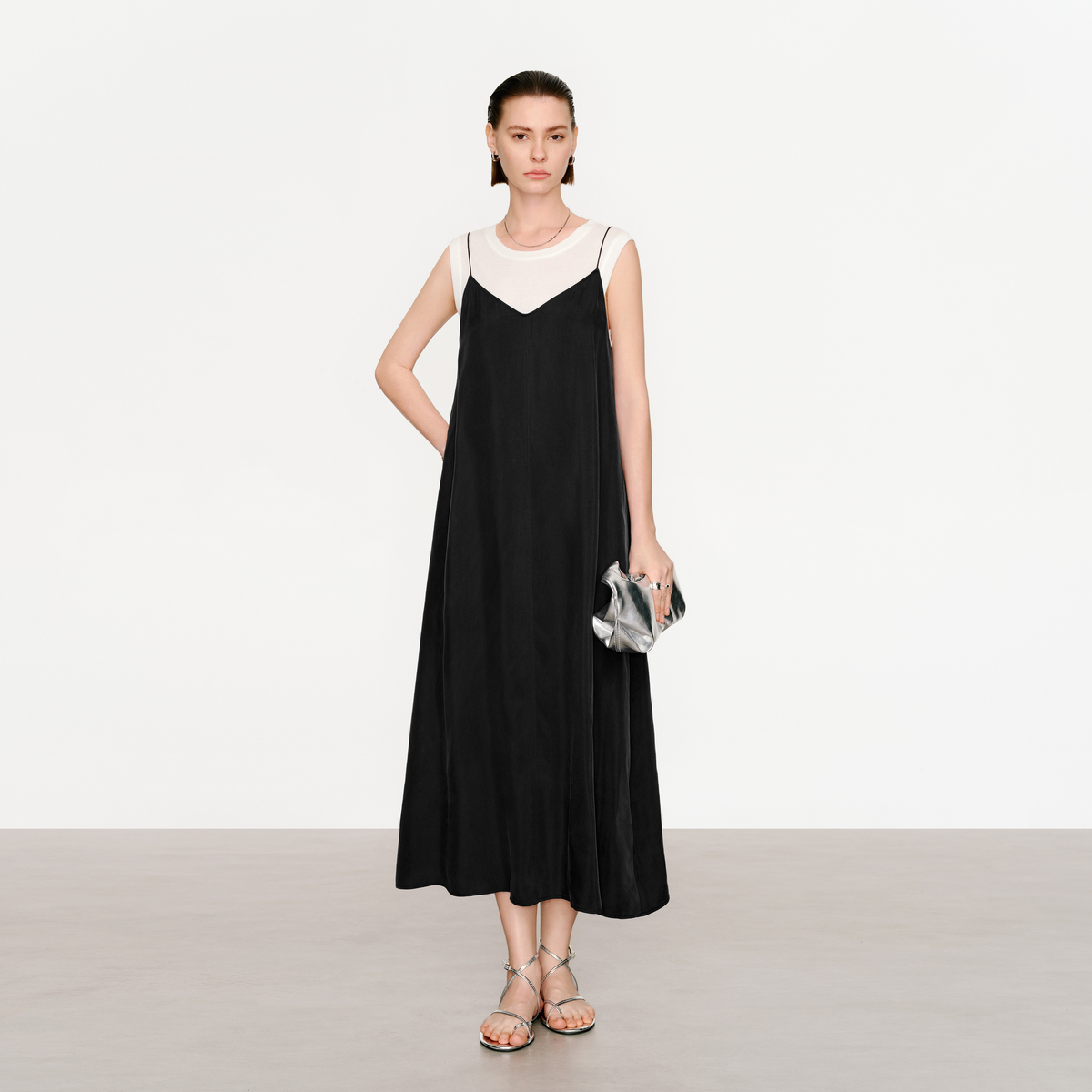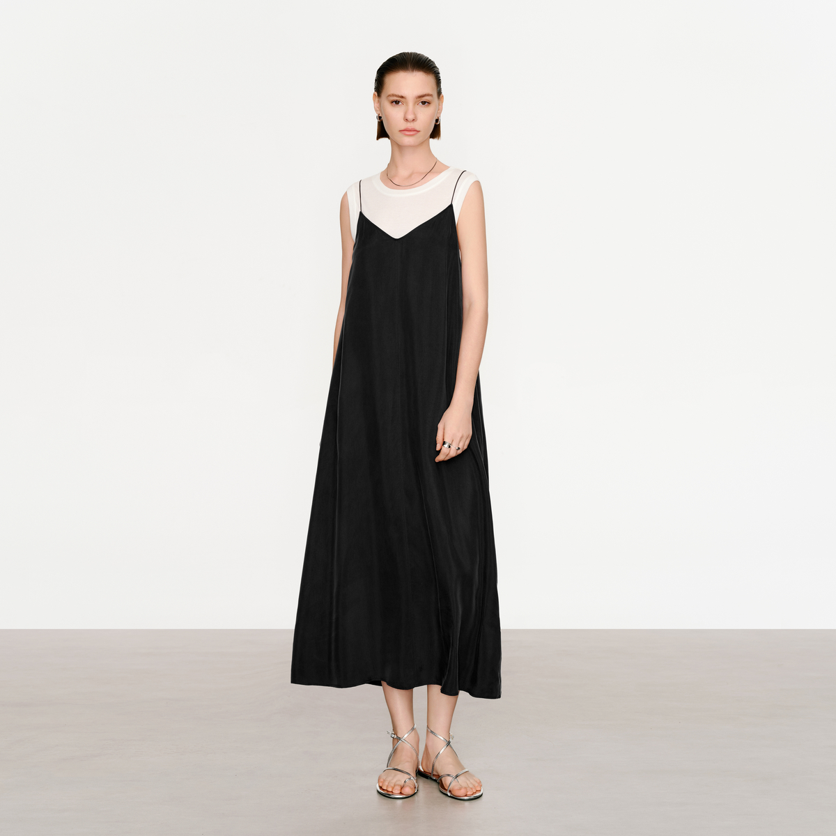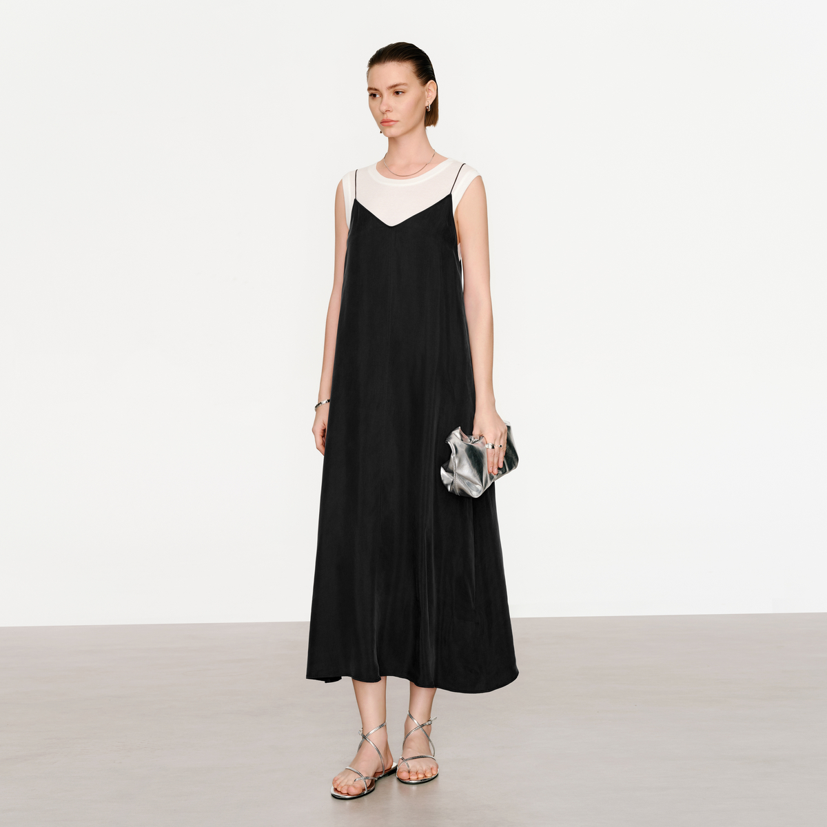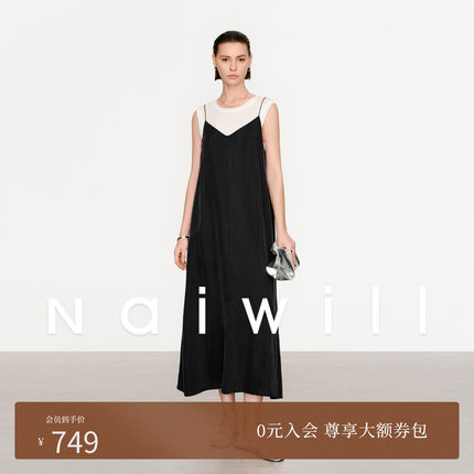 naiwill专柜同款 【日本进口铜氨丝100%】黑色吊带连衣裙夏季新款
