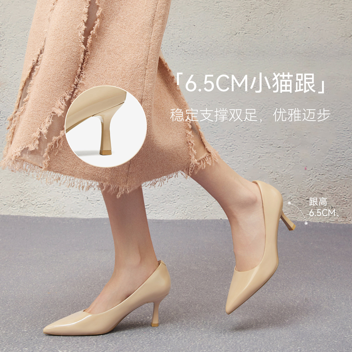 百思图2025秋季新款商场同款浅口单鞋潮流细高跟尖头女鞋CU711CQ5