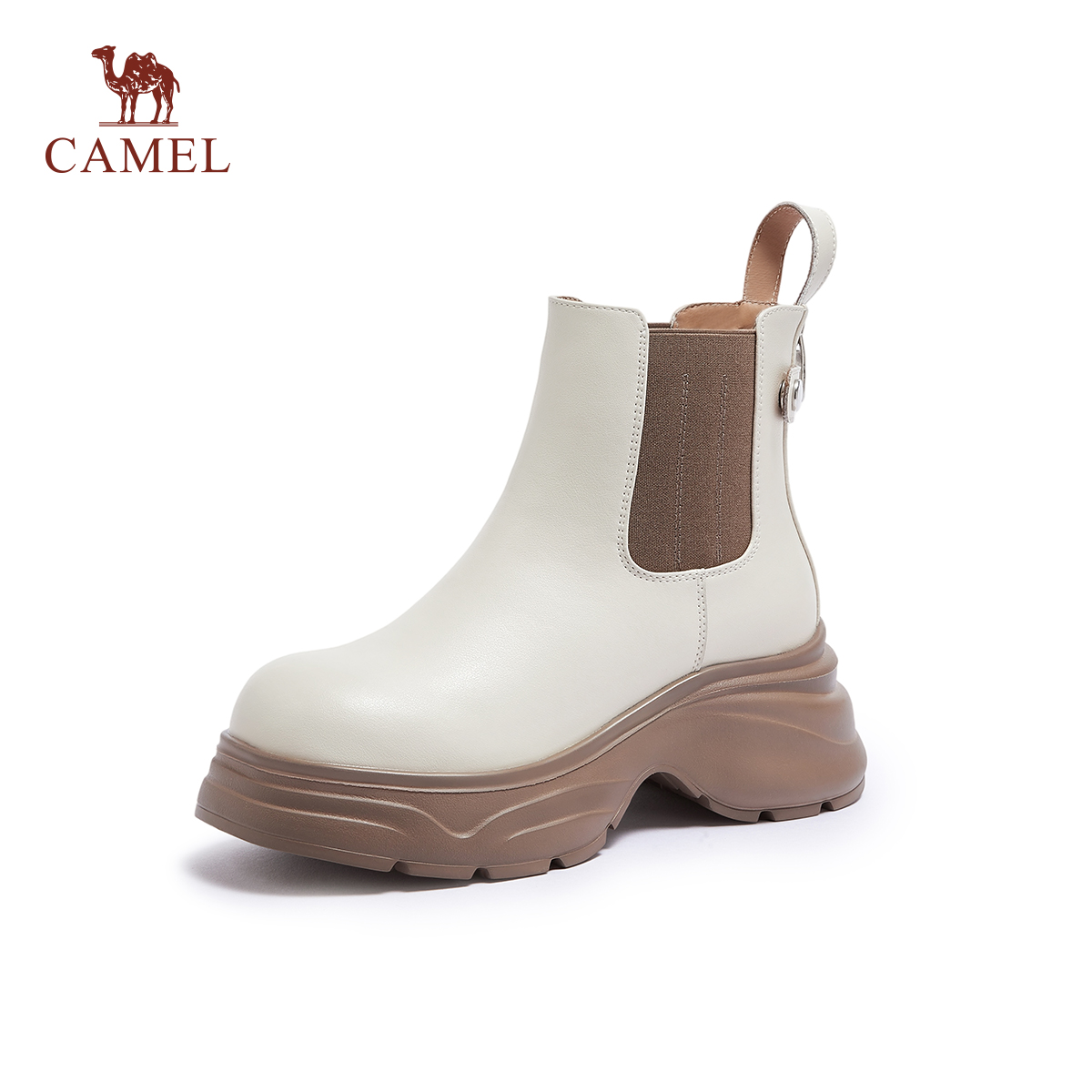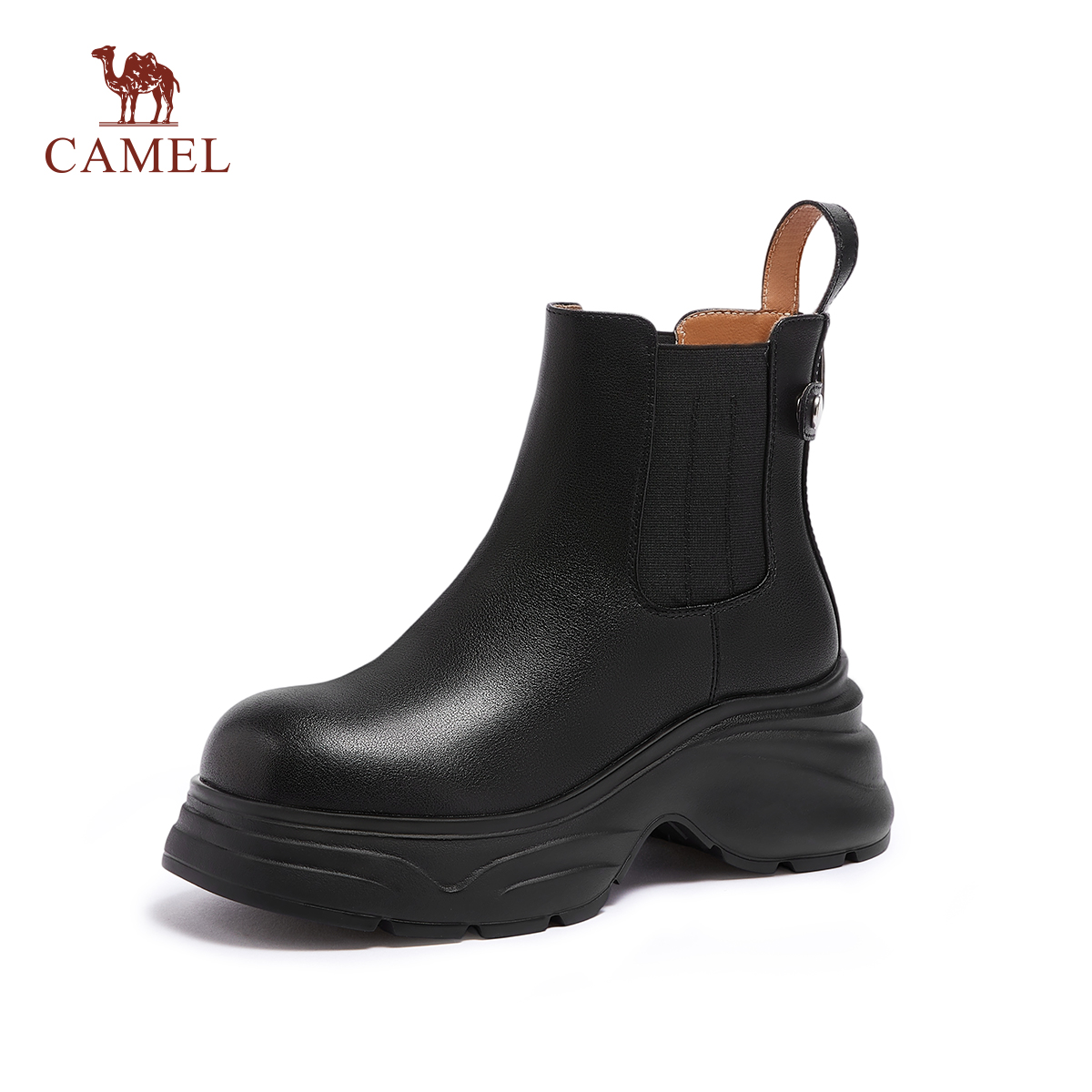 骆驼女鞋加绒切尔西靴子马丁靴女