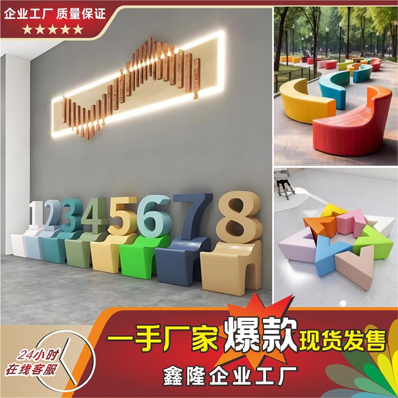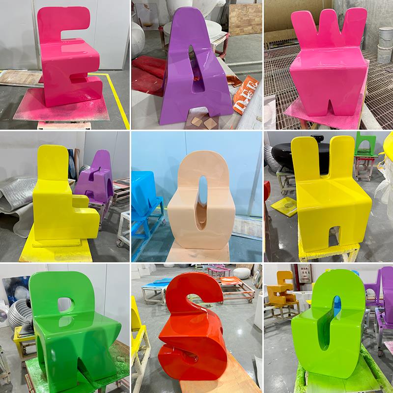 玻璃钢座椅商场休闲椅学校字母靠背坐凳定制户外公共休息区等候椅