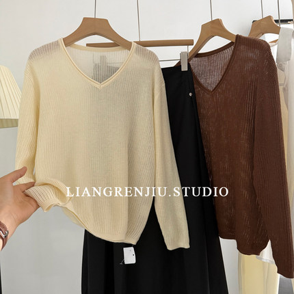 普普风。店主推!V领。博主风。柔软罩衫气质针织衫5108X