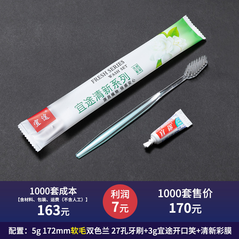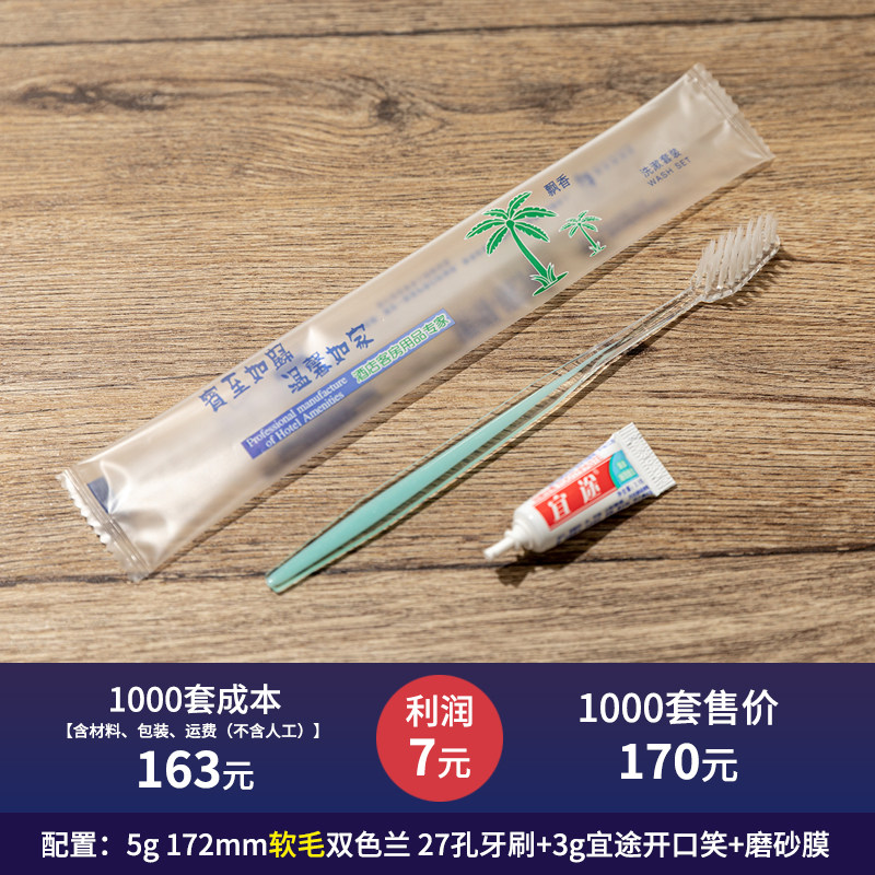 宾馆一次性洗漱用品民宿酒店客房双色软毛牙刷牙膏牙具二合一套装