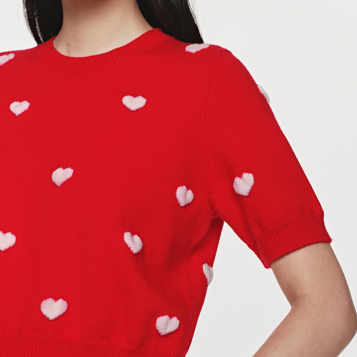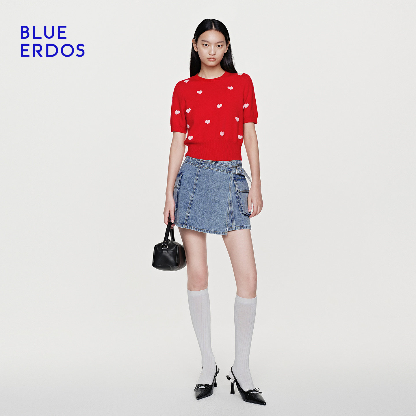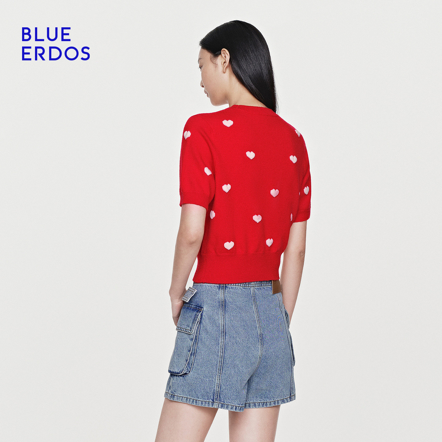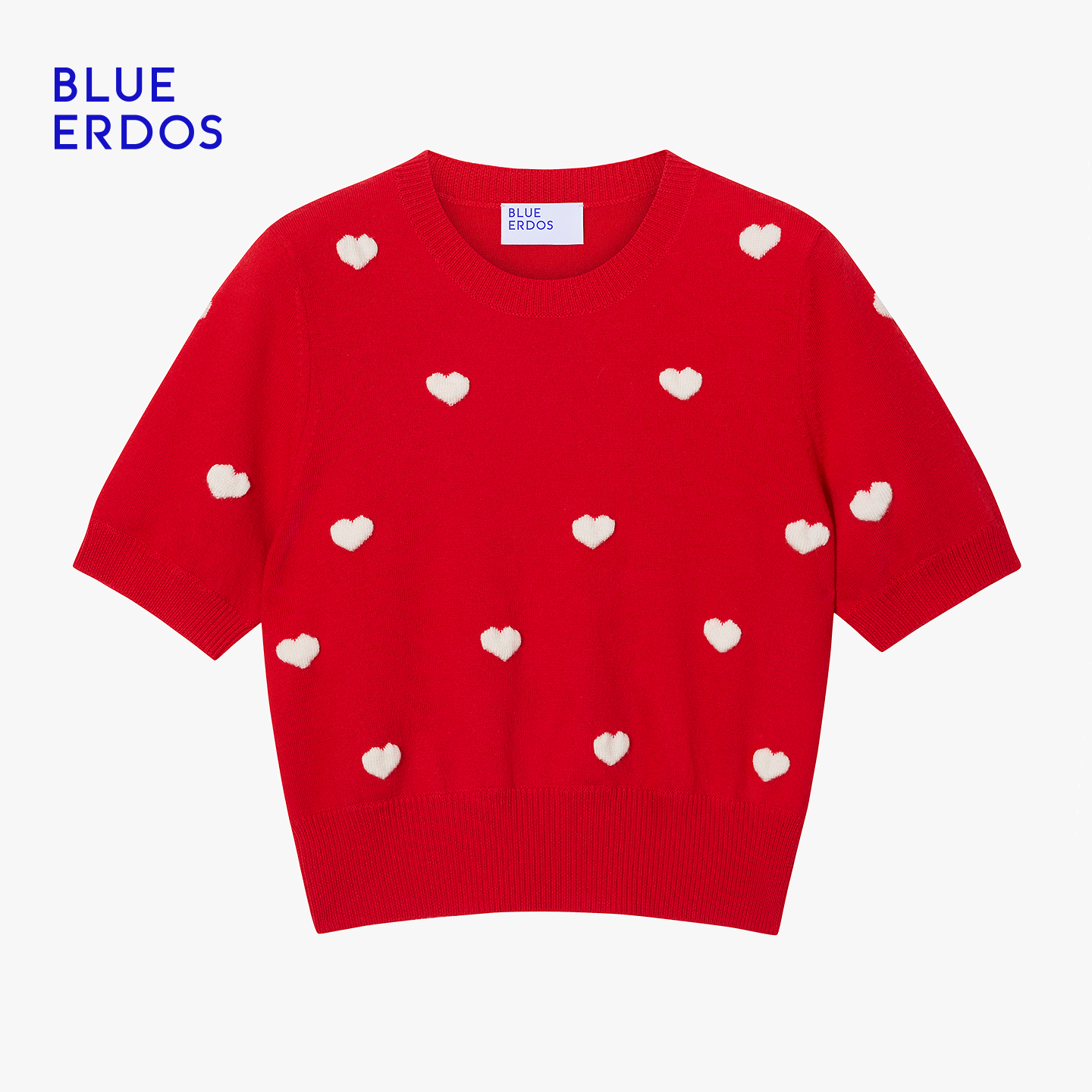 【心愿针织】BLUE ERDOS26早春新品100%绵羊毛圆领提花半袖针织衫
