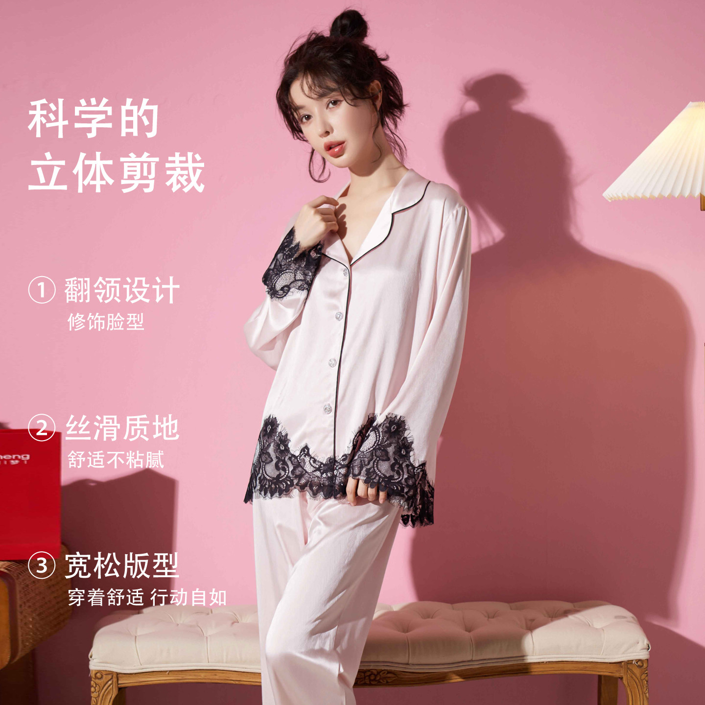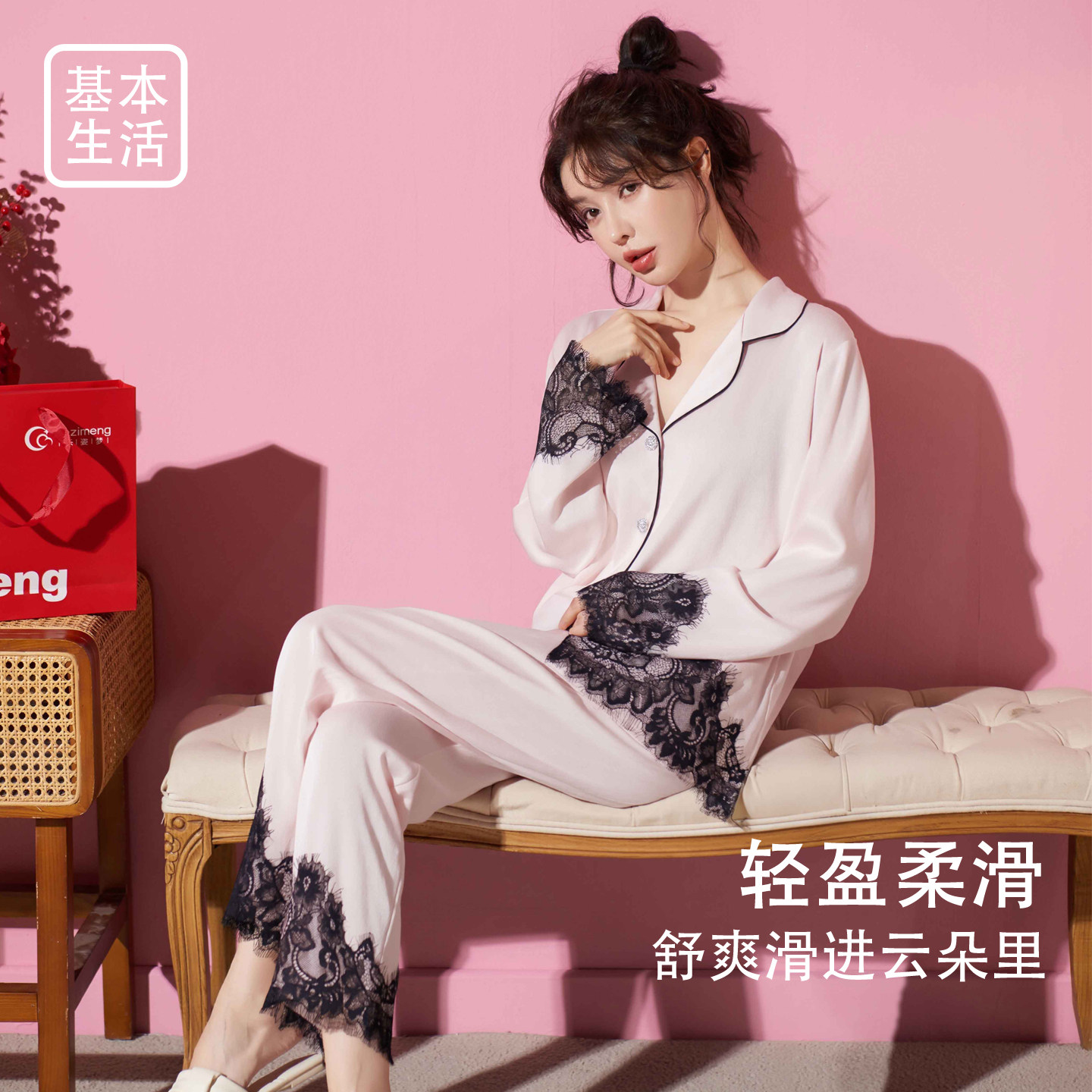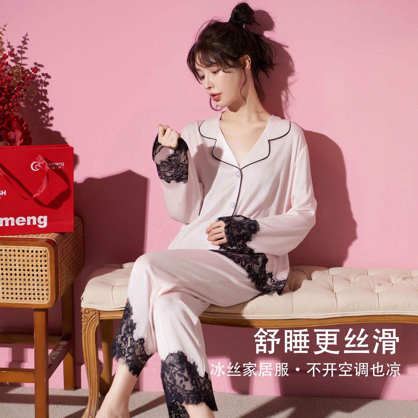 乐姿梦26新款睡衣女冰丝凉感春夏季长袖法式蕾丝可外穿套装家居服