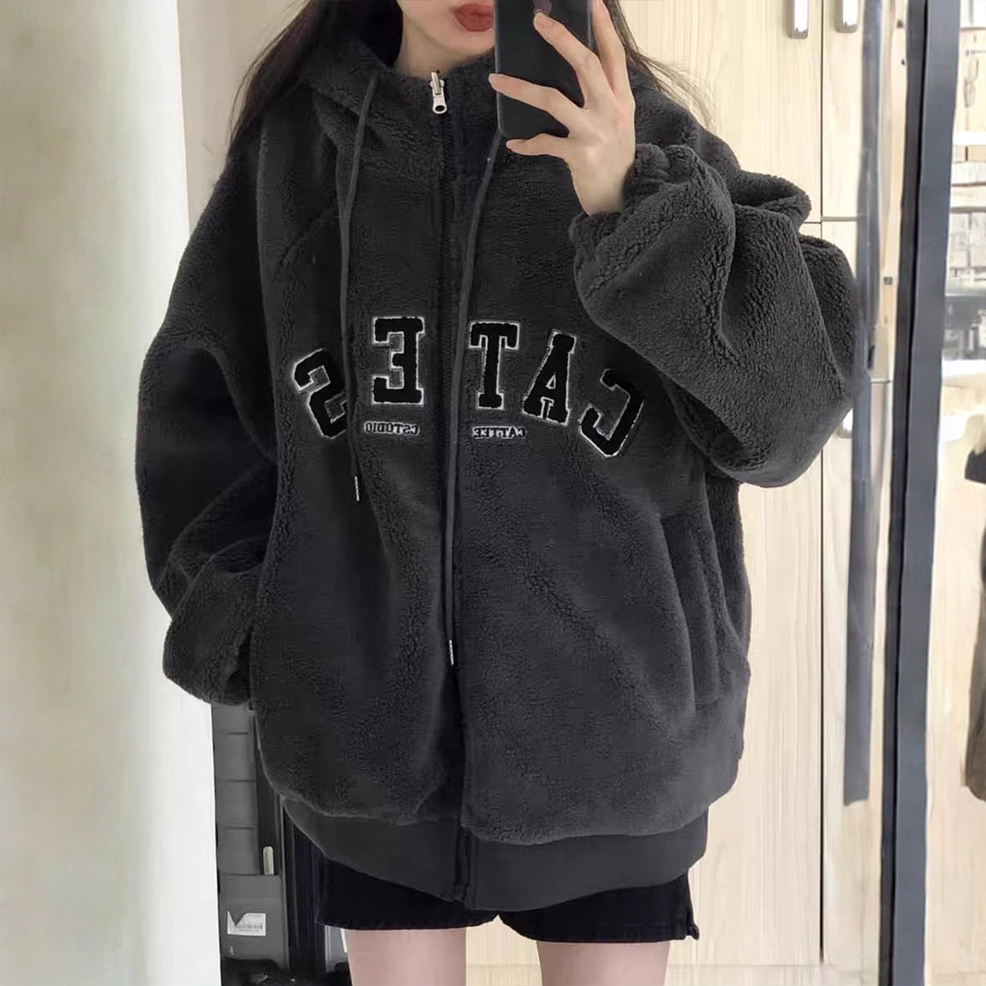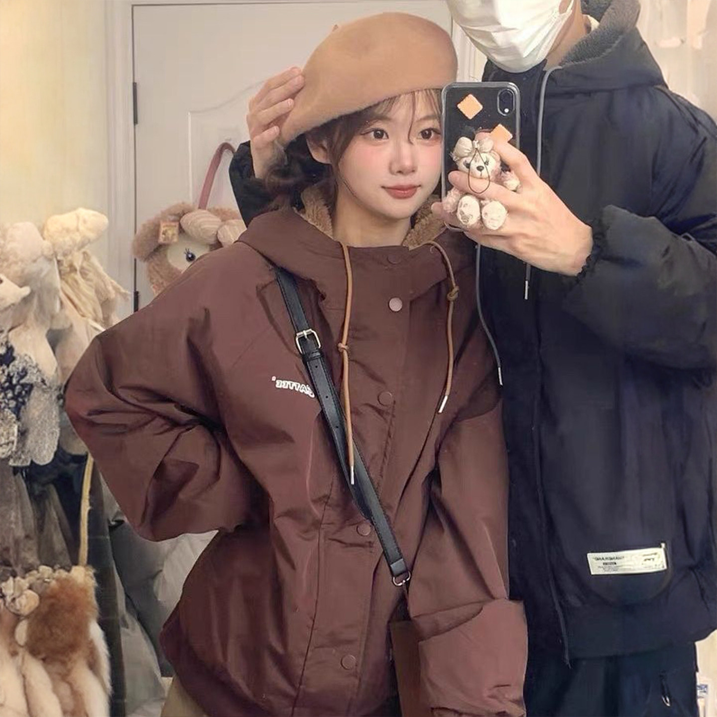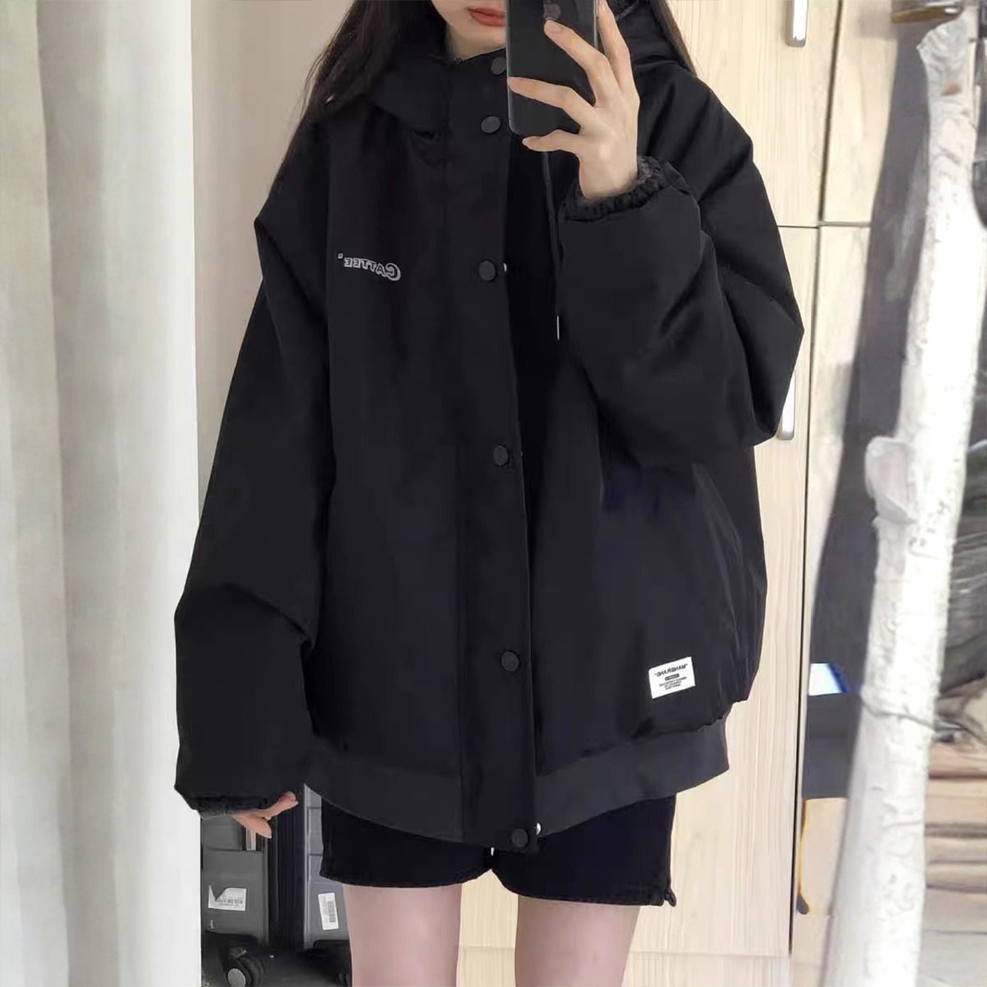 大码女装美式设计感双面穿棉服女