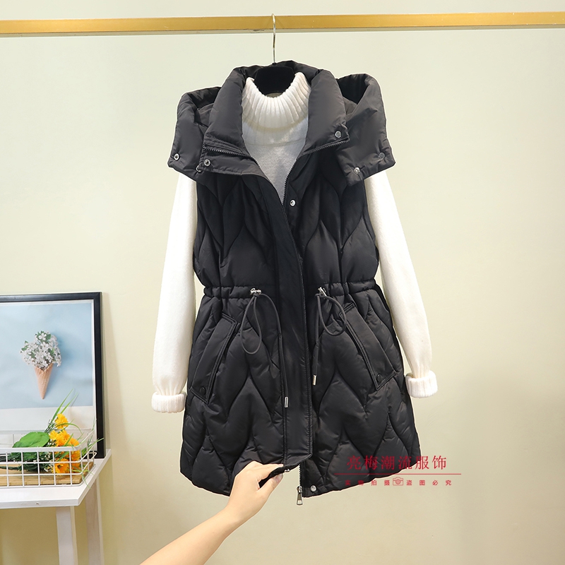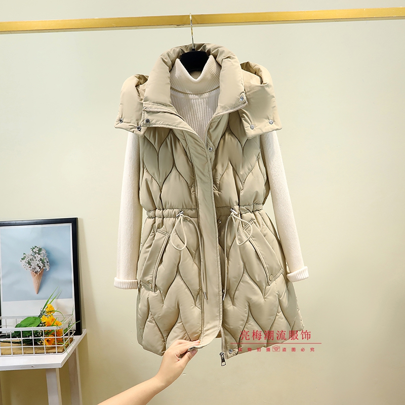 安哥拉红棉马甲女可拆卸帽中长款修身收腰棉背心坎肩外套秋冬新款